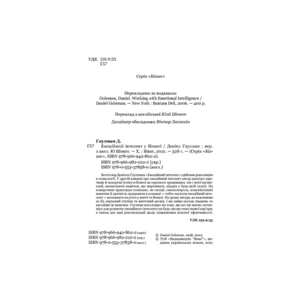 Книга, Емоційний, інтелект, бізнесі, Як, стати, успішним, житті, та, кар'єрі, Денiел, Ґоулман, Vivat, 9789669822222