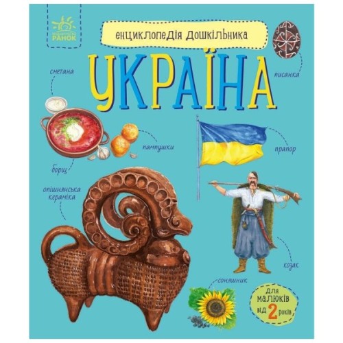 Гадаєте, що вашому синові чи донечці ще зарано знайомитися з енциклопедіями? Якщо малюкові вже є два роки — саме час! Роздивляйтеся разом малюнки, читайте тексти та дізнавайтеся нове про нашу чудову землю, її природу та багатства, українські символи та національні традиції. Книга допоможе маленькому любомудрикові познайомитися ближче з його рідною Батьківщиною, запам’ятати нові слова, вивчити короткі віршики.