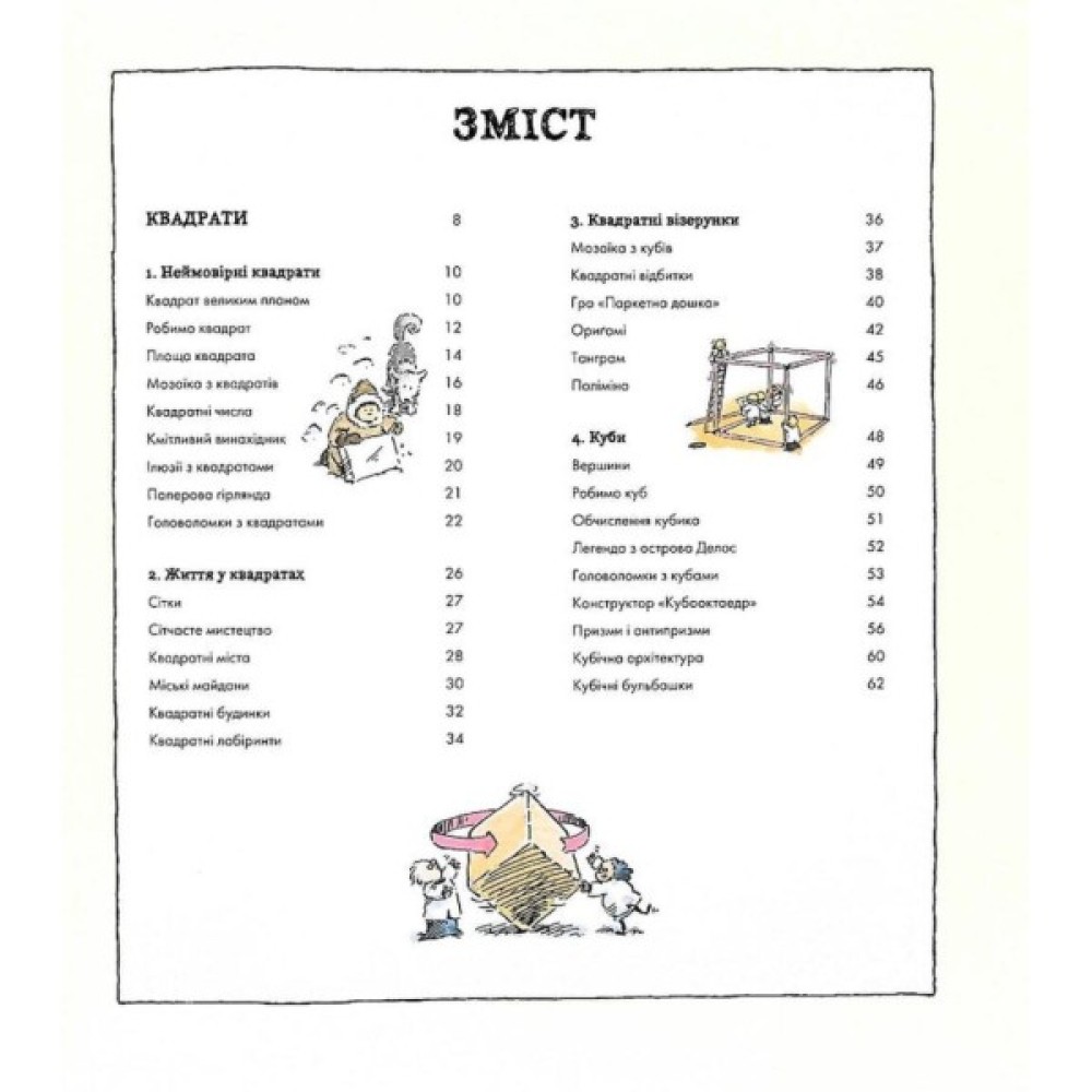 Діти дізнаються, як за допомогою квадрата планували найдавніші міста, а за допомогою трикутника зводили найміцніші мости, як будували кам’яні кола Стоунгенджу і вимірювали висоту єгипетських пірамід.