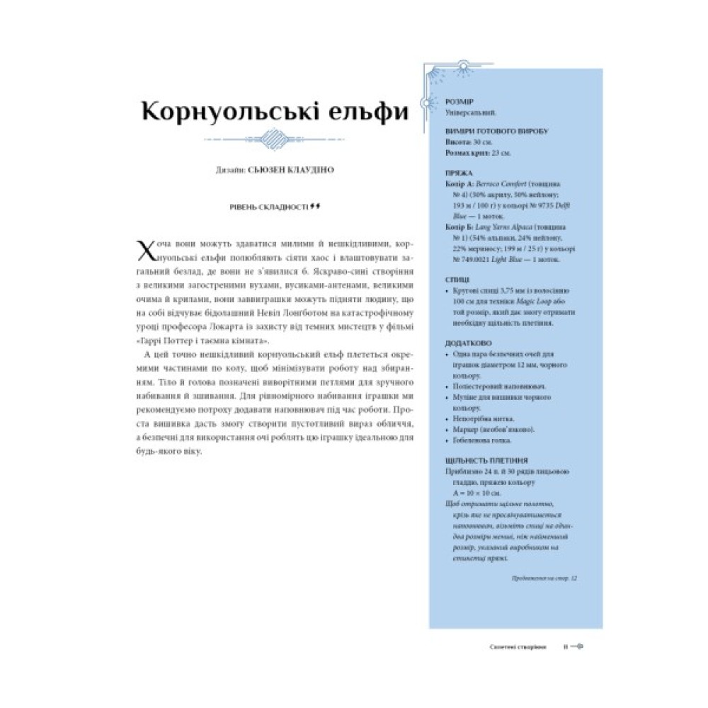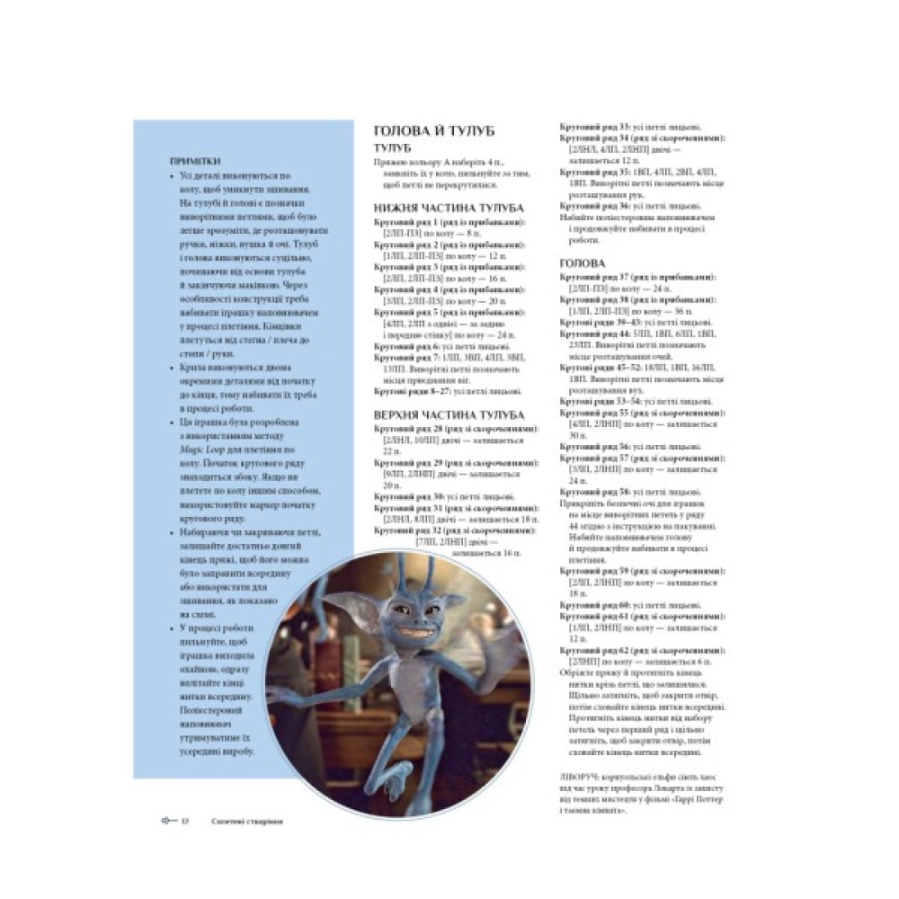 Це перше офіційне видання з плетіння на тему кіновсесвіту «Гаррі Поттера». Авторкою книги стала Таніс Ґрей. В її доробку — посібники з в’язання, сотні опублікованих дизайнів для плетіння, співпраця з тематичними журналами, робота викладачем в’язання. У цьому посібнику читачі знайдуть добре прописані візерунки та чіткі нотатки щодо конструкцій на початку кожної роботи, що допомагає заздалегідь уявити проєкт.