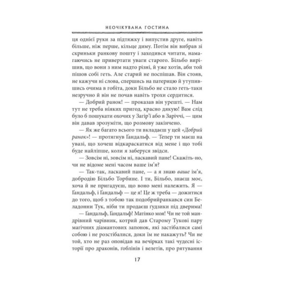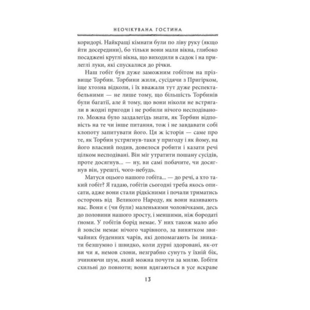 Це історія надзвичайної пригоди, яку втнула ватага ґномів, узявшись відшукати загарбане драконом золото. Мимохіть учасником цієї ризикованої виправи став Більбо Торбин, прихильний до комфорту і позбавлений амбіцій гобіт, котрий, на власний подив, виявив неабияку винахідливість і вправність у ролі зломщика. Сутички з тролями, ґоблінами, ґномами, ельфами та гігантськими павуками, бесіда з драконом, Смоґом Величним, і радше мимовільна присутність на Битві П’ятьох Армій — ось лише деякі пригоди, що їх судилося пережити Більбо. Але траплялись і світліші моменти: щира дружба, смачне частування, сміх та пісні.