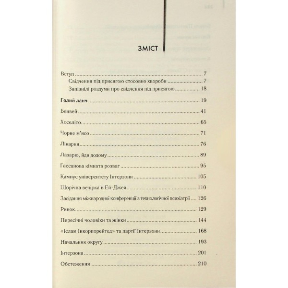Білл Лі, колишній коп і наркоман, тікає від закону, від себе, від реальності — й опиняється в Інтерзоні. Це химерний простір, де наркотики, тілесність і контроль сплітаються в марення без початку й кінця. В Інтерзоні панують параноя, тілесний жах і психосексуальний хаос. Тут розмовляють друкарські машинки, комахи торгують наркотиками, а уряд контролює тебе ізсередини.