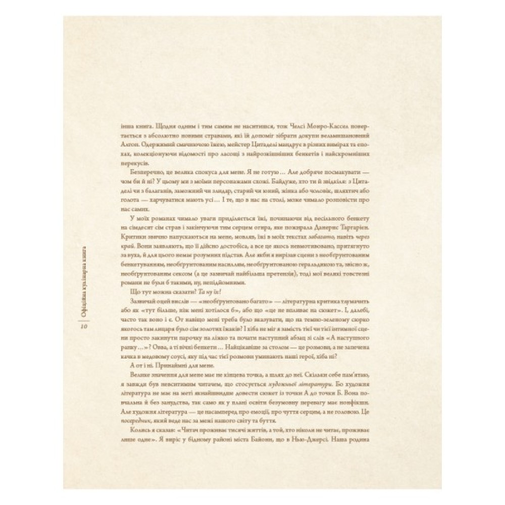 Рецепти проілюстровані апетитними фотографіями й приголомшливими ілюстраціями. Доповнена вступним словом від Джорджа Р. Р. Мартіна, ця книга перенесе вас в улюблений світ, де столи прогинаються від розкішних страв, келихи переливаються медом, а зима завжди наближається.