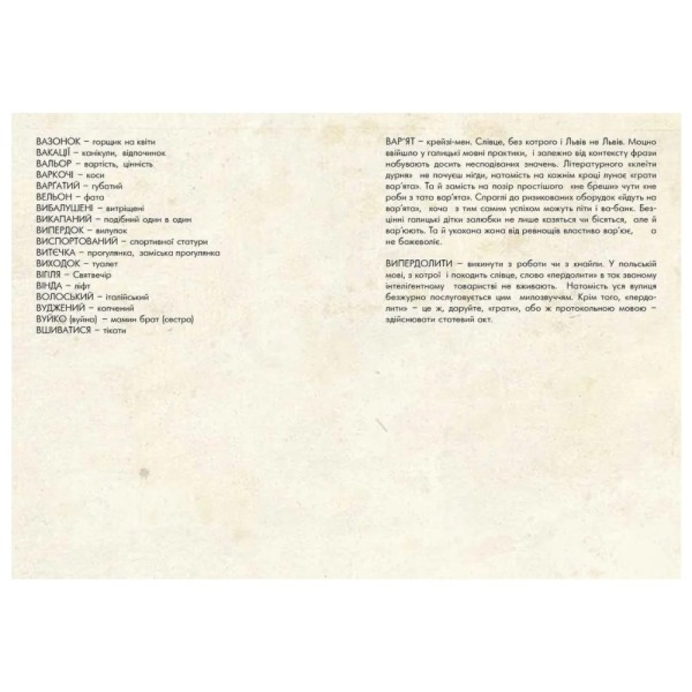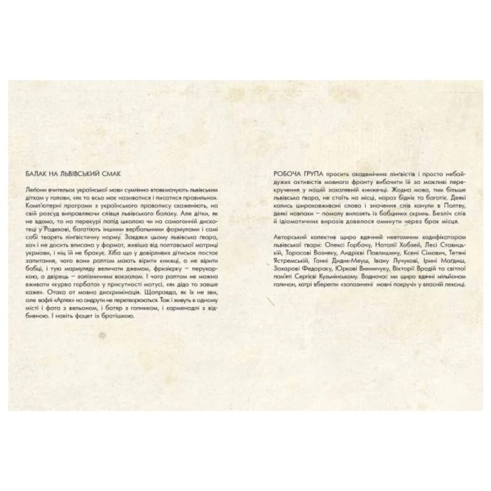 Робоча група просить академічних лінґвістів і просто небайдужих активістів мовного фронту вибачити їй за можливі перекручення у нашій захалявній книжечці. Жодна мова, тим більше львівська ґвара, не стоїть на місці, нараз бідніє та багатіє. Деякі колись широковживані слова і значення слів канули в Полтву, деякі навпаки – помалу вилазять із бабциних скринь. Безліч слів й ідіоматичних виразів довелося оминути через брак місця.