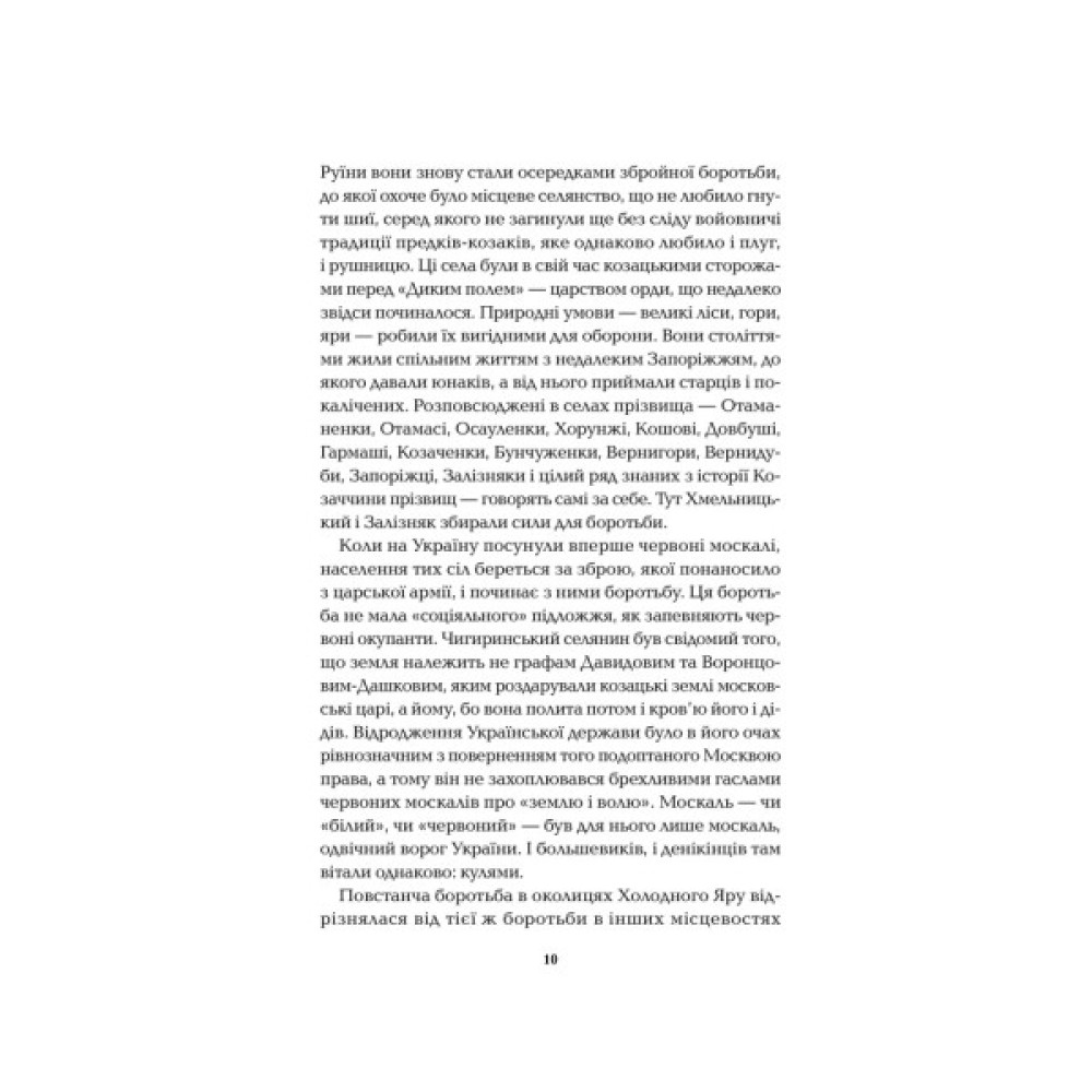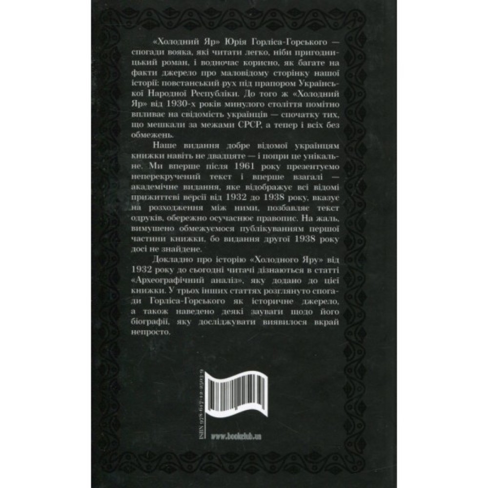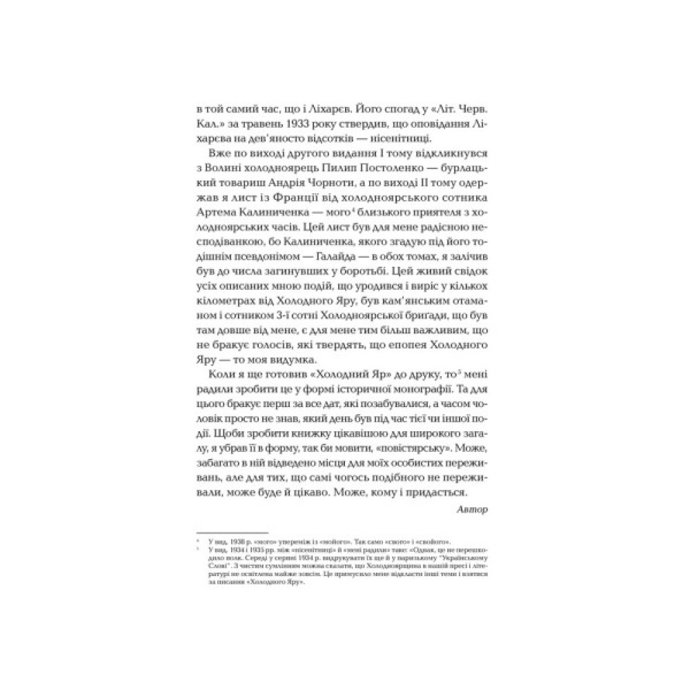 «Холодний Яр» — спогади вояка, які читати легко, ніби пригодницький роман. Це багате на факти джерело про маловідому сторінку нашої історії: повстанський рух під прапором Української Народної Республіки.