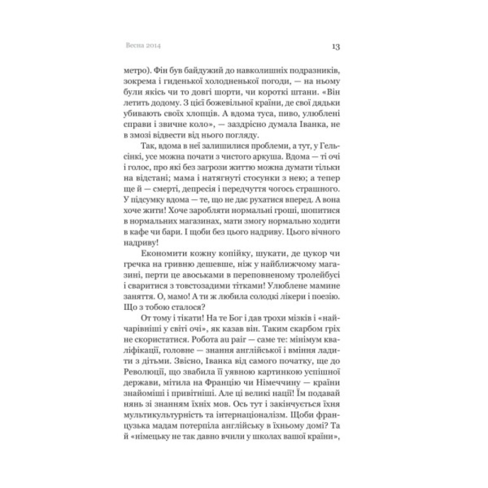 Іванка — молода українка, яка після Революції Гідності 2014 року переїздить до комфортного і спокійного Гельсінкі, де починає працювати нянею за програмою «Au pair» у звичайній фінській родині середнього класу. У Фінляндії вона переживає глибокий комплекс провини, зближується з місцевими українцями і паралельно вивчає особливості фінського добробуту. Зависнувши між двома світами — фінським і українським, — Іванка намагається знайти своє місце під сонцем, як і тисячі інших українців в еміграції.