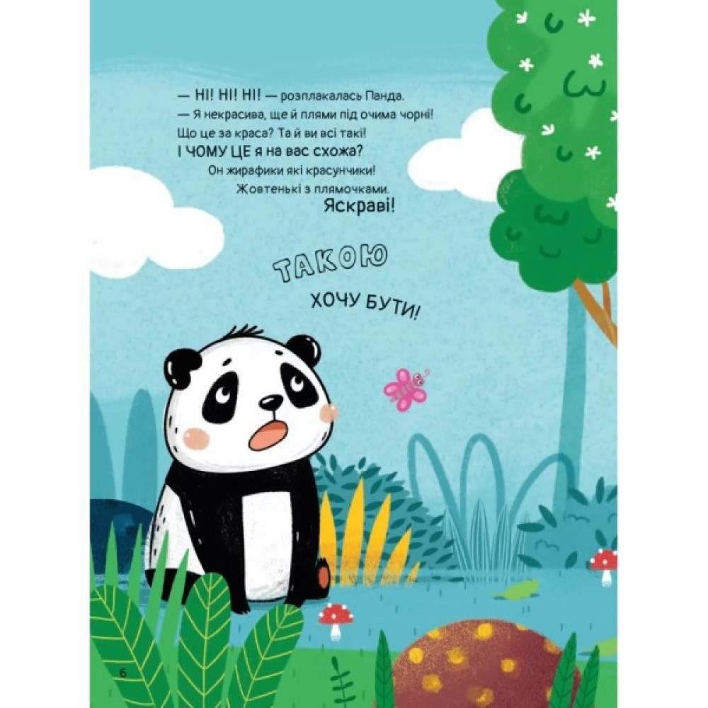 Головна героїня переконана: вона товста, незграбна, й не дуже симпатична. Оточення, родина й друзі запевняють її, що Панда красуня, але героїня не вірить. Ідеалом краси вона бачить струнких і високих, плямистих жирафів. Щоб бути своєю у жираф’ячому племені, Панда прямує до салону краси й фарбується, наносячи собі плями. Але жирафи висміюють її — для них малеча ніколи не буде своєю. Натомість вони говорять, що бачили панд і ці створіння чудові, а головна героїня просто смішна.
