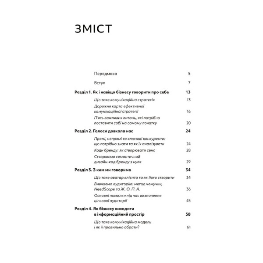 Будь-який бізнес матиме успіх лише тоді, коли завоює лояльність широкої аудиторії. Без грошей і хитрощів — за допомогою правди й ефективної системи комунікацій. Перед вами книжка, яка допоможе це зробити. Авторка докладно інформує, як самотужки розробити комунікаційну стратегію та втілити її в життя незалежно від ніші й наявності чи відсутності бюджету на просування. Ціла низка корисних і зрозумілих схем, таблиць, інформативних практичних порад та професійних секретів, якими щедро ділиться авторка, вам у поміч. Завдяки QR-кодам ви матимете змогу одразу завантажити їх у смартфон і використовувати для своєї роботи.