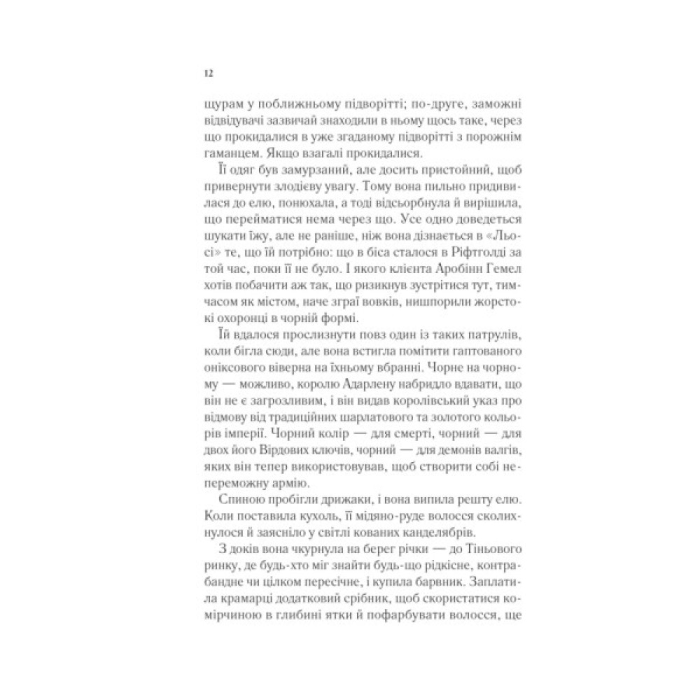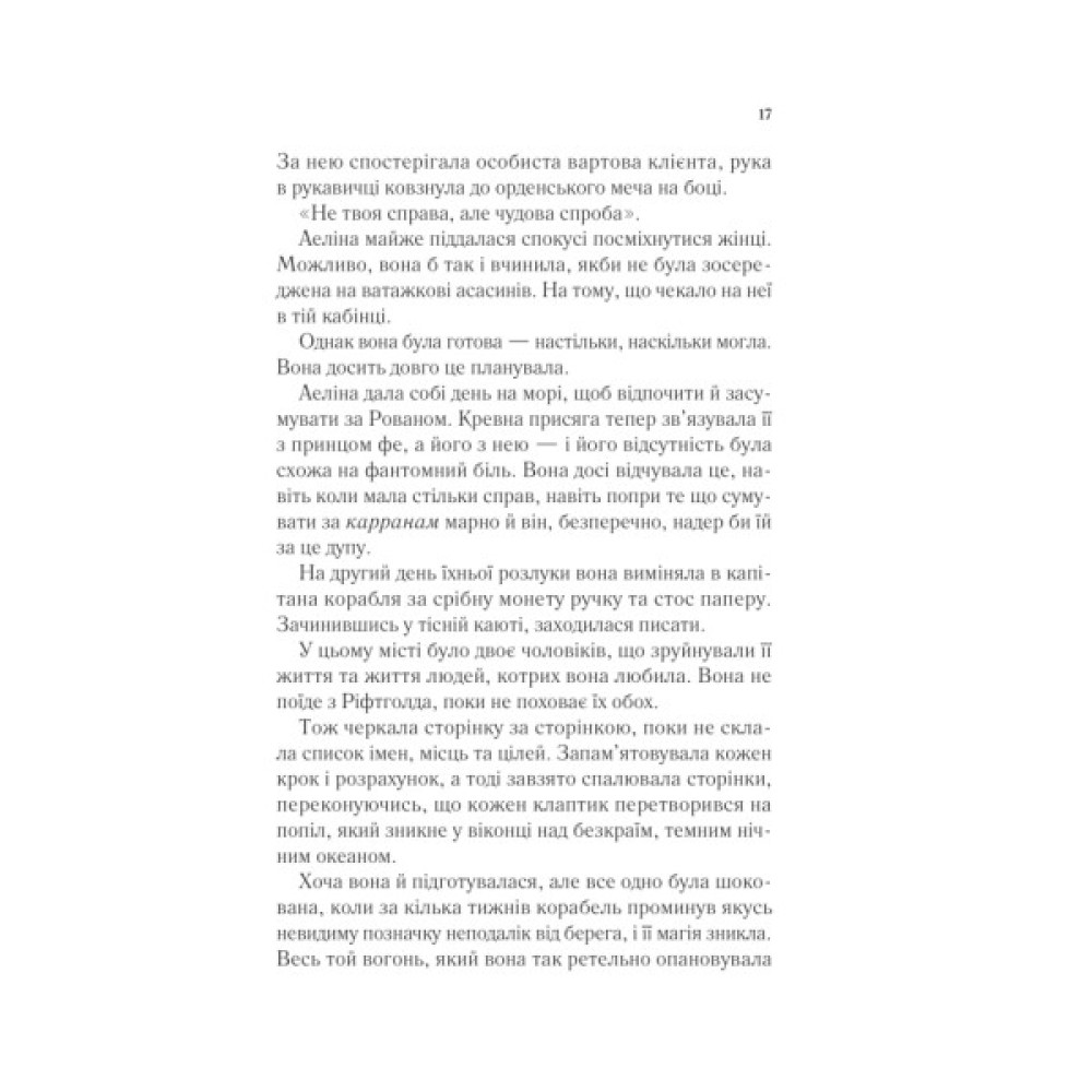 Коли в Селени Сардотін забрали всіх, кого вона любила, їй залишилося єдине: вирушити назад у загарбану злом імперію та помститися тіням свого минулого — заради рідних людей і втраченої домівки. Нарешті прийняла себе як є — вона Аеліна Ґалатінія, королева Террасену. І досі здатна посісти свій трон, якщо не здасться без бою. Як на лихо, на цьому тяжкому шляху одне за одним постають добре знайомі та нові обличчя, тож їй ще належить розбиратися, хто з них ворог, а хто вартує довіри. Але попри все вона боротиметься: за кузена — воїна, що ладен за неї померти, і за друга — юнака, якого полонила сила пітьми. Вона боротиметься за рідний народ, пригнічений жорстоким королем, адже ці люди сподіваються на тріумфальне повернення своєї втраченої королеви.
