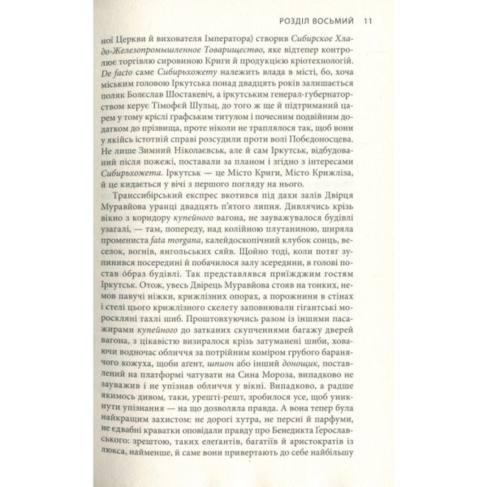 Прибувши до Іркутська, Бенедикт Ґерославський потрапляє в середовище великих підприємців і промисловців, частина з яких прагнуть політичної незалежності Сибіру. Тут він співпрацює з геніальним американським винахідником Ніколою Теслою, якому російський імператор доручив розробити зброю проти лютих, аби подолати Кригу і розморозити Історію. Проте на кожному кроці на Бенедикта чигають небезпеки й випробування, влаштовані фанатичними шанувальниками Мороза, якими керує всемогутній Григорій Распутін. Усе ж він прямує у саме серце Краю Зими. Чи вдасться Ґерославському розшукати батька? Чим завершаться експерименти Тесли? Чи настане в Євразії велика Відлига? І чи розшукає наш герой свою прекрасну Єлену?