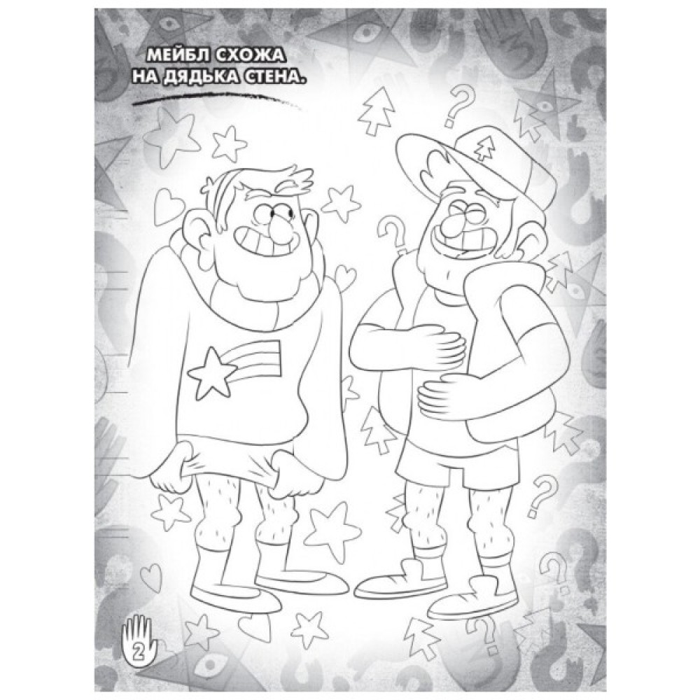 Зустрічай улюблених персонажів "Гравіті Фолз" на сторінках цієї загадкової розмальовки. У загадковому містечку знову безліч пригод і таємниць! Усередині книжки окрім сторінок для розфарбовування багато цікавих завдань. Понад 30 яскравих наліпок.