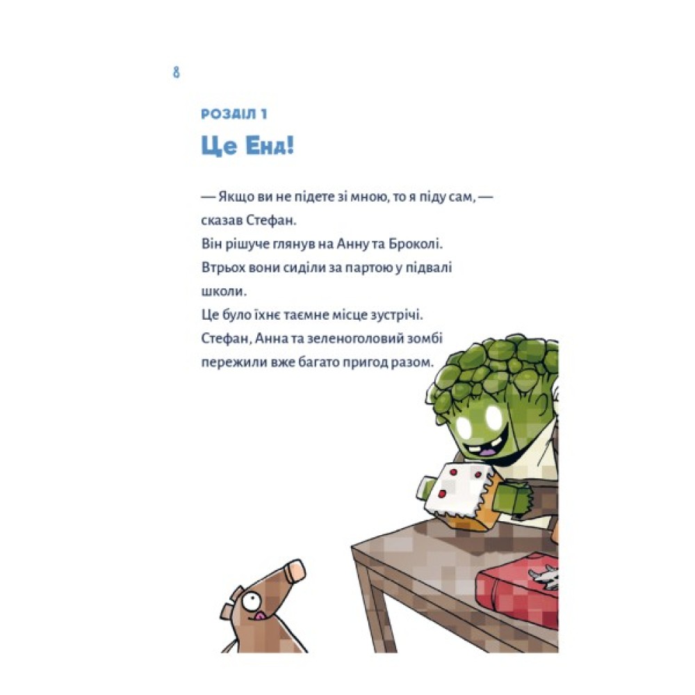 Третя книга популярної серії для усіх, хто любить Minecraft та вчиться читати. Нова пригода Стефана, Анни та зомбі, на імʼя Броколі. Цього разу вони зустрінуться віч-на-віч із небезпечним Ендер-драконом! Друзі думають, що це кінець, але Стефан знаходить таємничі крила. Чи зможе він із ними перемогти дракона?
