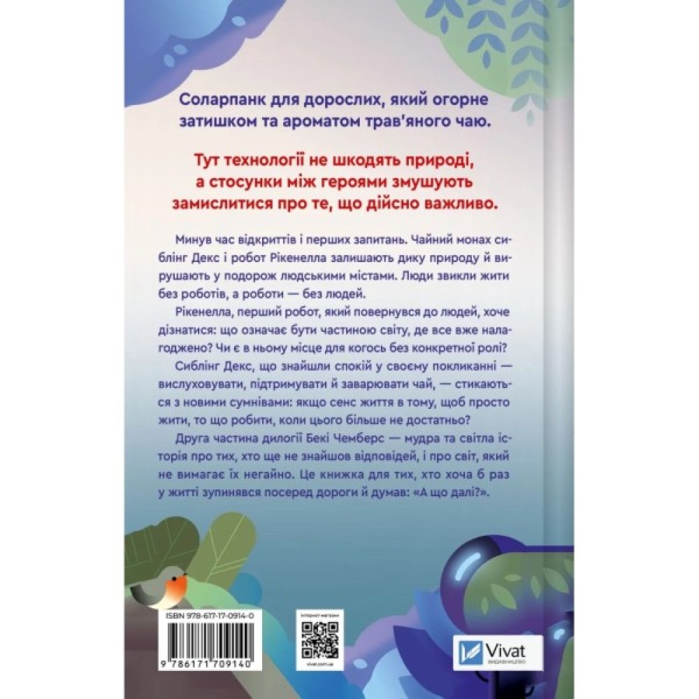 Друга частина дилогії Бекі Чемберс — мудра та світла історія про тих, хто ще не знайшов відповідей, і про світ, який не вимагає їх негайно. Це книжка для тих, хто хоча б раз у житті зупинявся посеред дороги й думав: «А що далі?».