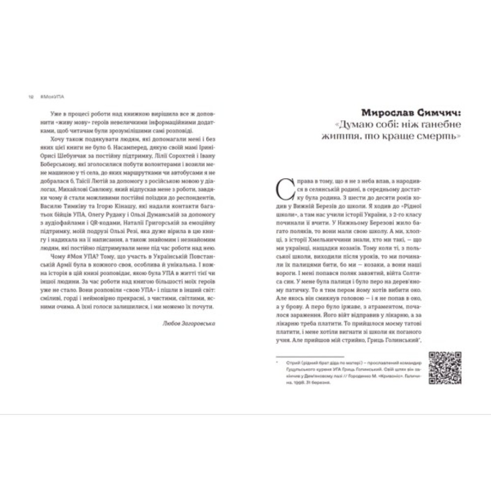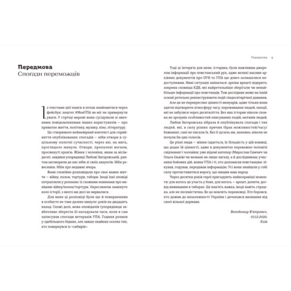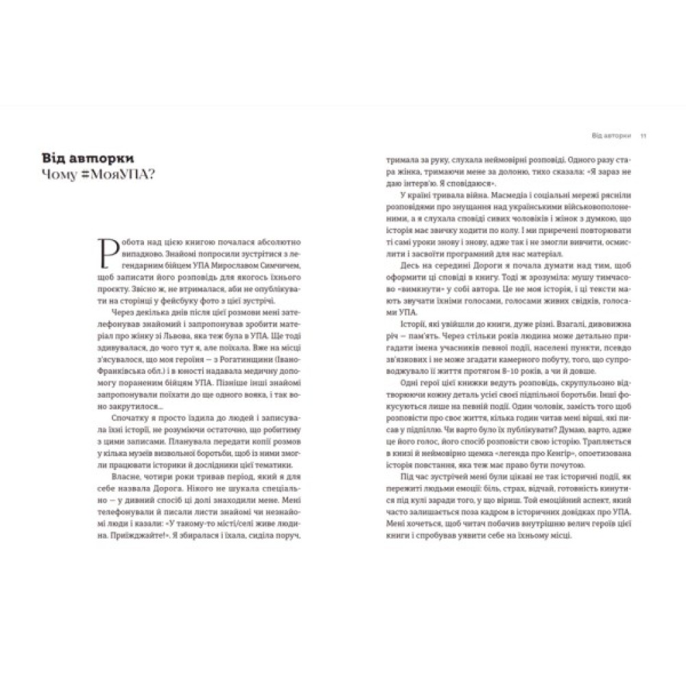 У цій книзі — 39 розповідей про людей, які або воювали в УПА, або допомагали українській армії боротися за незалежність України майже 100 років тому. Книга про людей, які зазнали переслідувань, арештів, репресій і які залишилися незламними й нескореними у своїй боротьбі. Книга-сповідь, яку варто прочитати, аби осмислити велику сторінку історії України через призму людської долі.