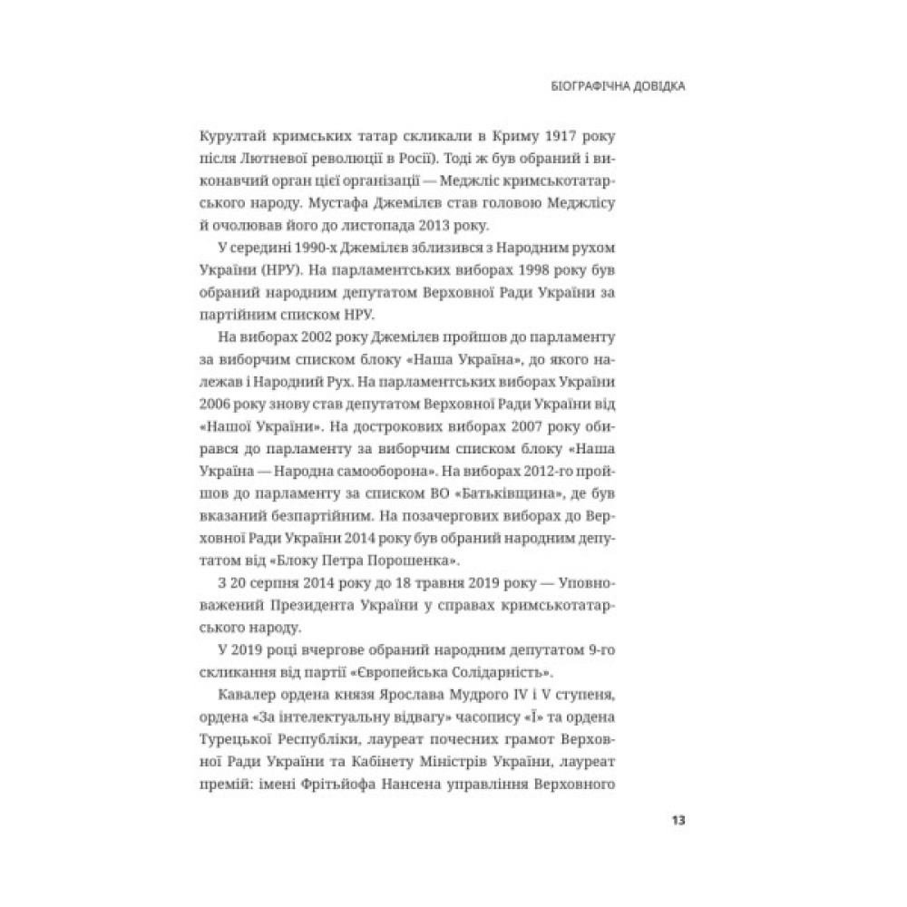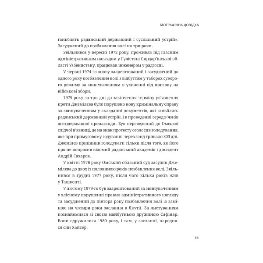 - Нонфікшн супроводжується численними інформаційно-довідковими матеріалами для кращого розуміння контексту. Читачі можуть ознайомитися не лише з біографією Джемілєва, а й з різними історичними подіями, явищами у культурі кримських татар і політичними зрушеннями, що вплинули на буття народу.