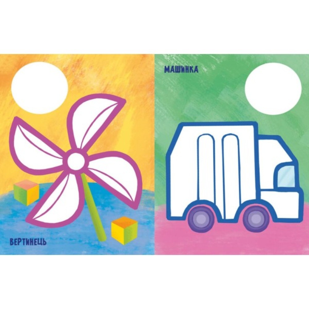 У «Моїх іграшках» на малюка чекають великі прості малюнки з товстим кольоровим контуром.