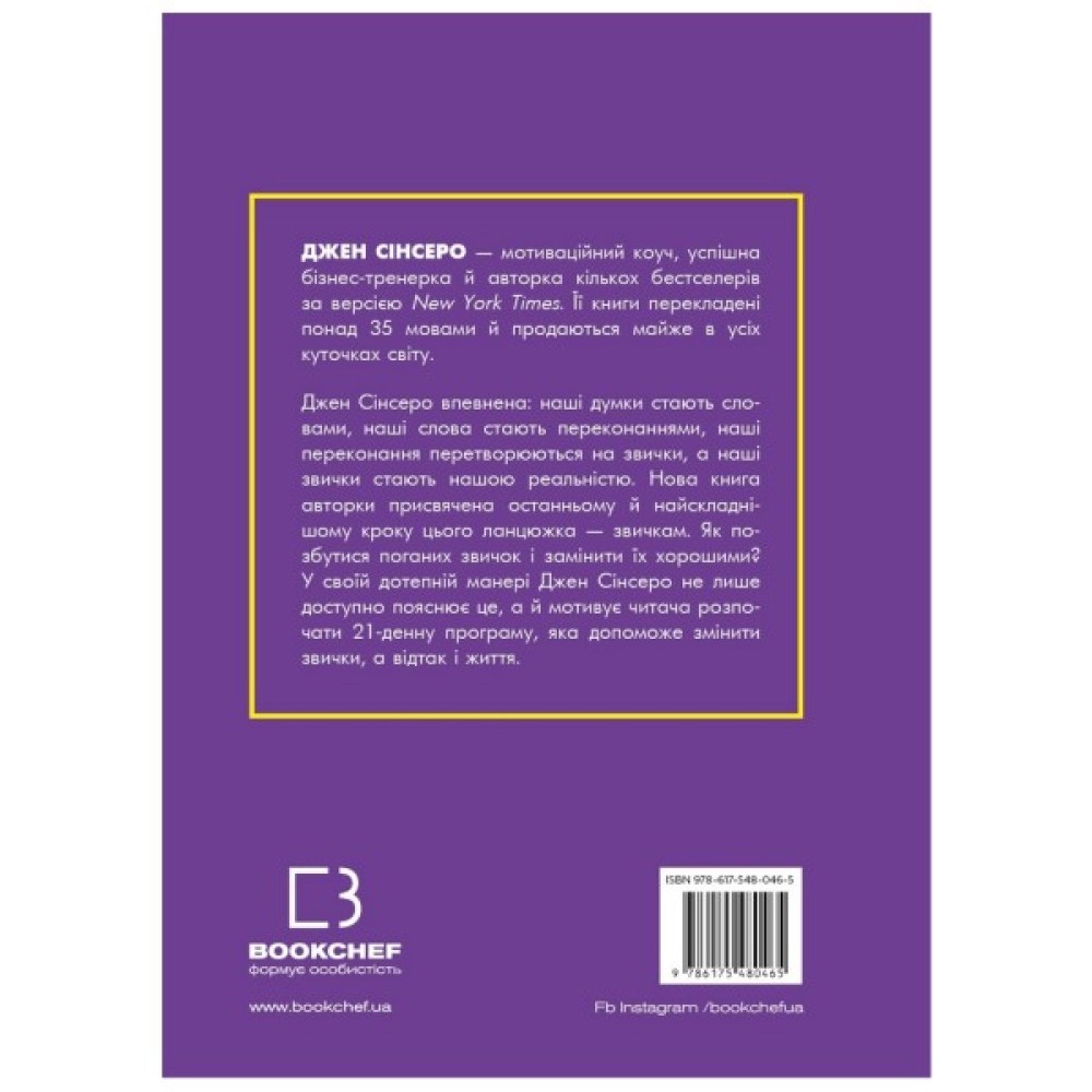 Джен Сінсеро — авторка бестселерів і мотиваційний коуч — переконана: наші думки стають словами, наші слова стають переконаннями, наші переконання перетворюються на звички, а наші звички стають нашою реальністю.