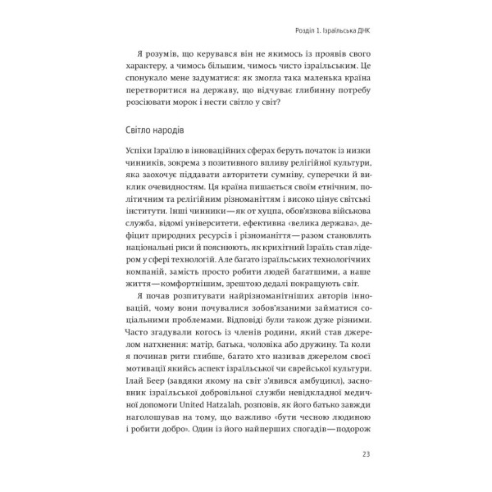 "Аві підібрався до секретного складника ізраїльської інноваційної потуги, розповідаючи історію маленької країни, що використовує свої технології для покращення життя мільярдів людей в усьому світі… Ця глибока та надихаюча книжка розкриває серце та душу країни".