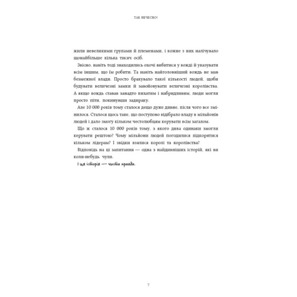 Від обробітку землі та розподілу ресурсів до будівництва пірамід і сплати податків — приготуйтеся дізнатися, як люди заснували цивілізацію, пережили її наслідки та створили винаходи, що змінили історію. Наші предки, можливо, захопили світ, але що сталося далі? Як мисливці-збирачі стали фермерами? Чому з’явилися перші великі держави й закони? Як ми перетворилися з володарів Землі на володарів одне одного? І чому ж, зрештою, світ такий несправедливий?