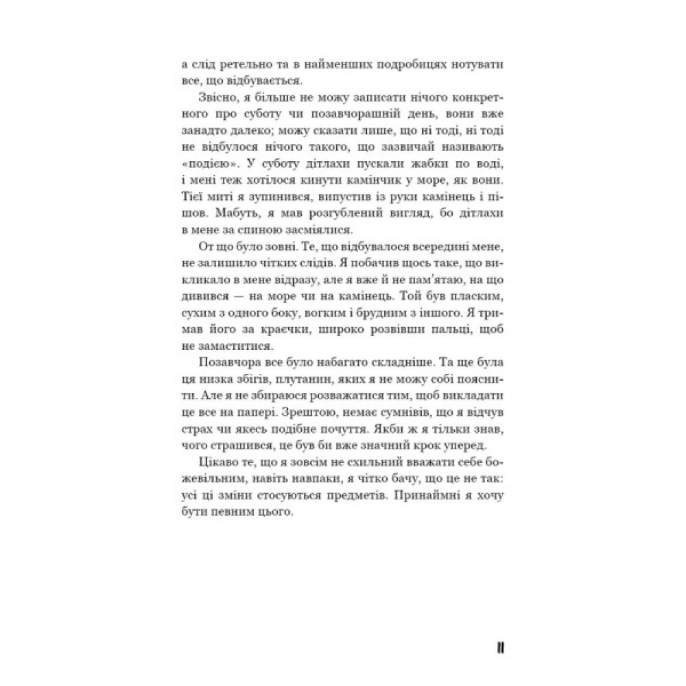 Щось починається й одразу завершується. Це просто подія, яка трапилась і яких регулярно трапляється чимало, чи вже пригода, що не надається до продовження і лише кінець надає їй сенсу? Що таке життя, і чи воно тотожне існуванню? І якщо ні, то що ж таке існування, якщо нудить і від того, й від того?
