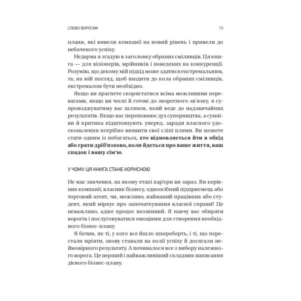 Книга допомагає розвинути неупереджену, чітку позицію щодо опонентів, навчитися об'єктивно аналізувати ворога, його стимули й можливості.