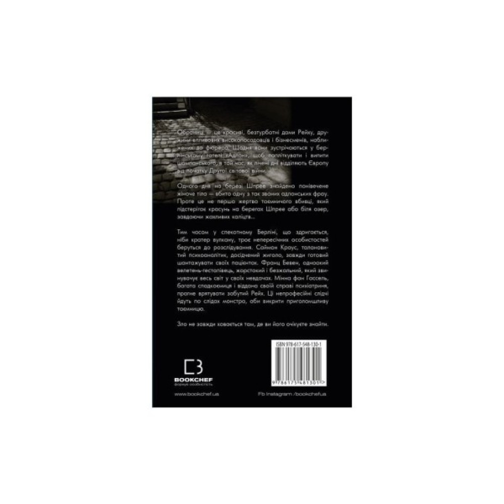 Тим часом у спекотному Берліні, що здригається, ніби кратер вулкану, троє непересічних особистостей беруться до розслідування. Саймон Краус, талановитий психоаналітик, досідчений жиголо, завжди готовий шантажувати своїх пацієнток. Франц Бевен, одноокий велетень-гестапівець, жорстокий і безжальний, який звинувачує весь світ у своїх невдачах. Мінна фон Гассель, багата спадкоємиця і віддана своїй справі психіатриня, прагне врятувати забутий Рейх. Ці непрофесійні слідчі йдуть по слідах монстра, аби викрити приголомшливу таємницю.