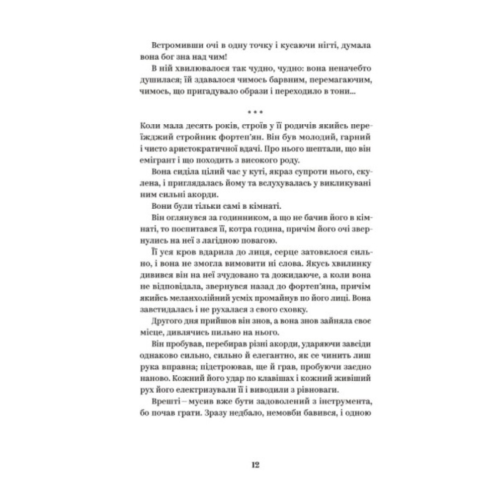 До вашої уваги одна з найвідоміших повістей Ольги Кобилянської — «Царівна», що створювалася впродовж 1888–1895 років спочатку німецькою, а згодом українською мовою та порушує актуальну на ті часи тему емансипації жінок. До видання також увійшли «Impromtu phantasie», «Valse melancolique», «Людина», «Некультурна» й «Битва».