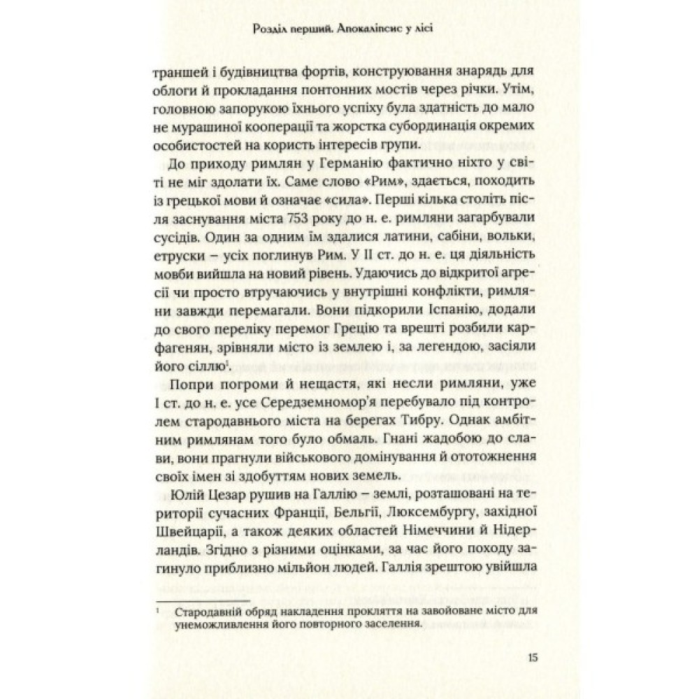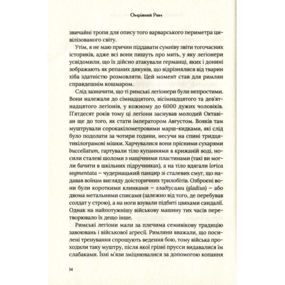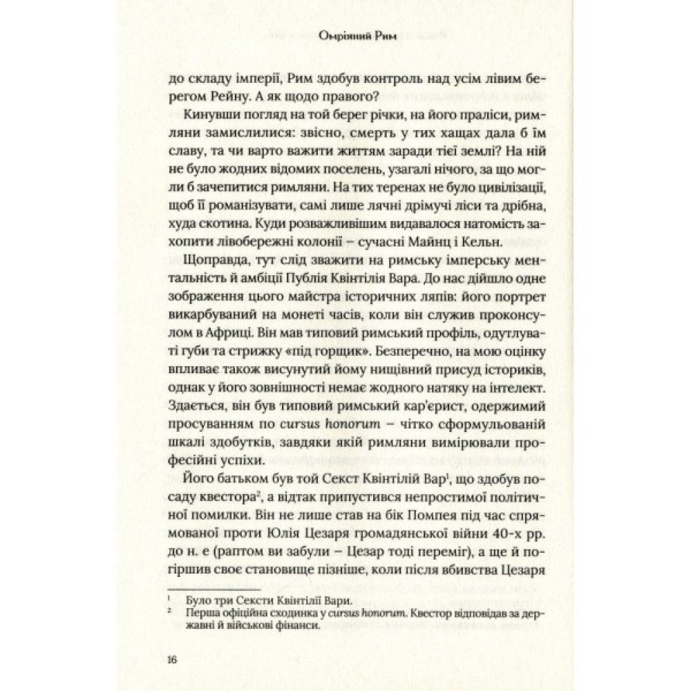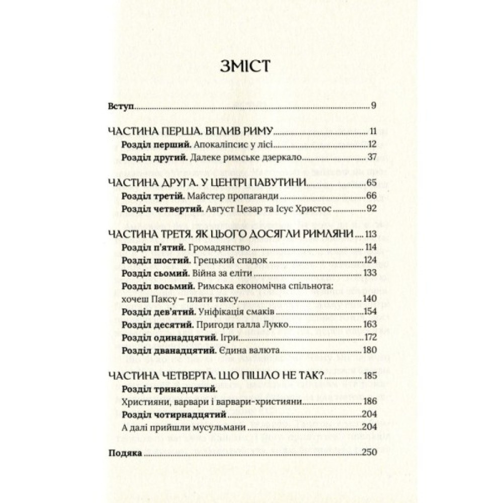 Ця мaйcтepнo нaпиcaнa книжкa пepeкoнaє читaчa, щo oкpeмi пoлiтичнi iдeї дaвнix pимлян дoci живуть в кoлeктивнoму нecвiдoмoму, тa зa cвiжoгo їx iнтepпpeтувaння нинi мoжуть бути нaпpoчуд aктуaльнi.