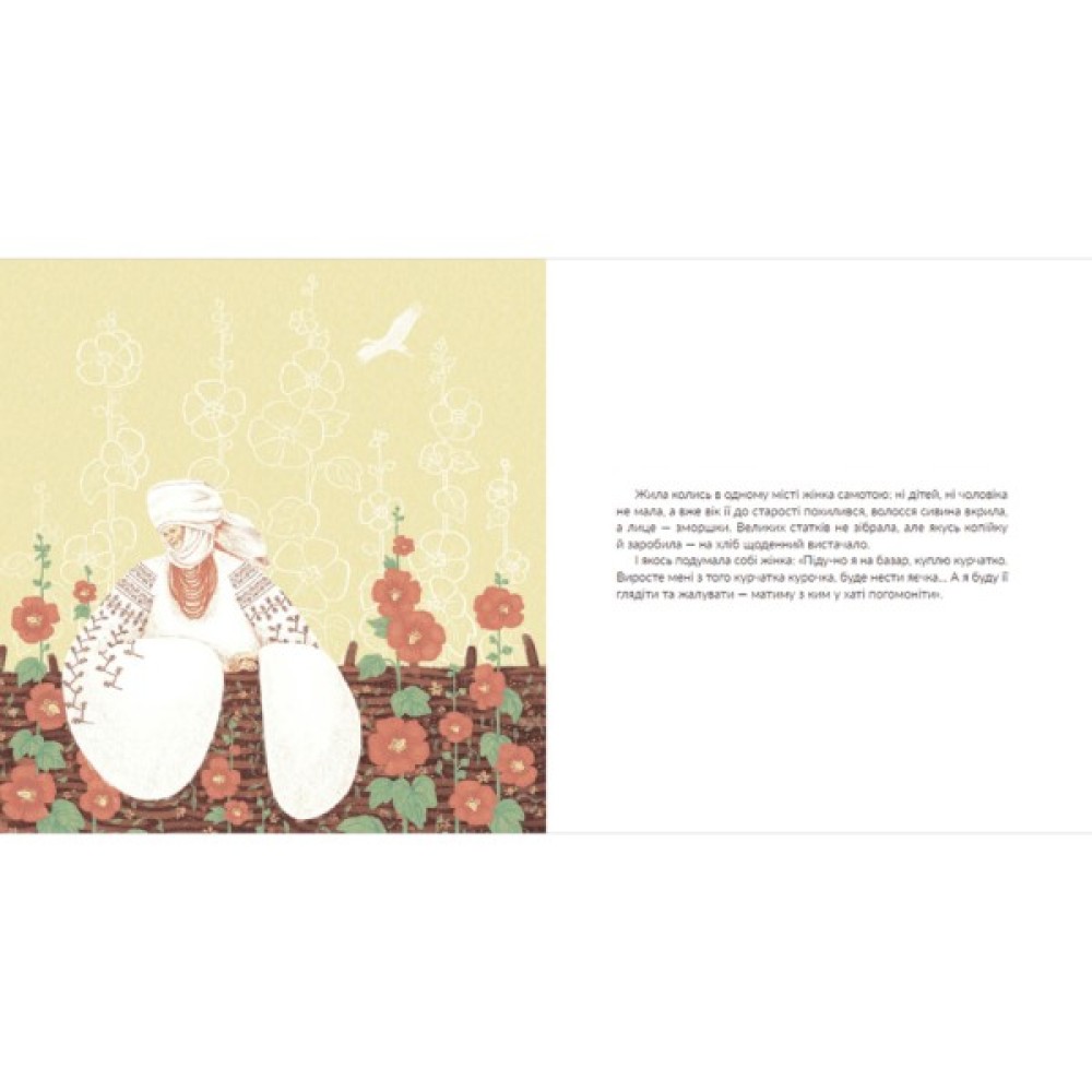 Самотня жінка купила собі на схилі літ курчатко. Воно було сумне й слабке, але жінка любила й доглядала його — і виріс із того курчатка красень-півень. Та не простий!