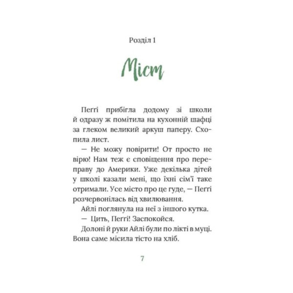 Пеґґі було сім років, коли вона разом із сестрою та братом пережила тяжку подорож по Ірландії. Тепер їй уже тринадцять, і вона вирушає у мандрівку до Америки. Переправа через океан триває шість виснажливих тижнів. Що ж чекає на неї у Новому Світі? Як упорається вона в чужій країні? І які доленосні зустрічі подарують їй справжню дружбу?