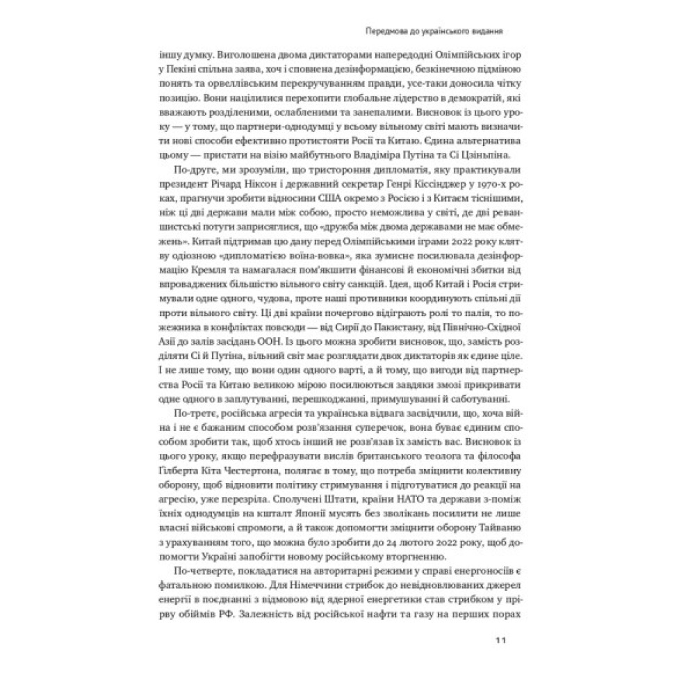 У книжці він висловлює щиру підтримку українцям, детально аналізує «російську війну нового покоління», експансіоністську політику Китаю, проксі-війни Ірану, ситуацію на Близькому Сході, в Афганістані та Східній Азії. Також він відверто говорить про помилки НАТО і США протягом останніх десятиліть. А ще — як подолати проблеми світової безпеки, захистити свободу і приборкати тиранію.
