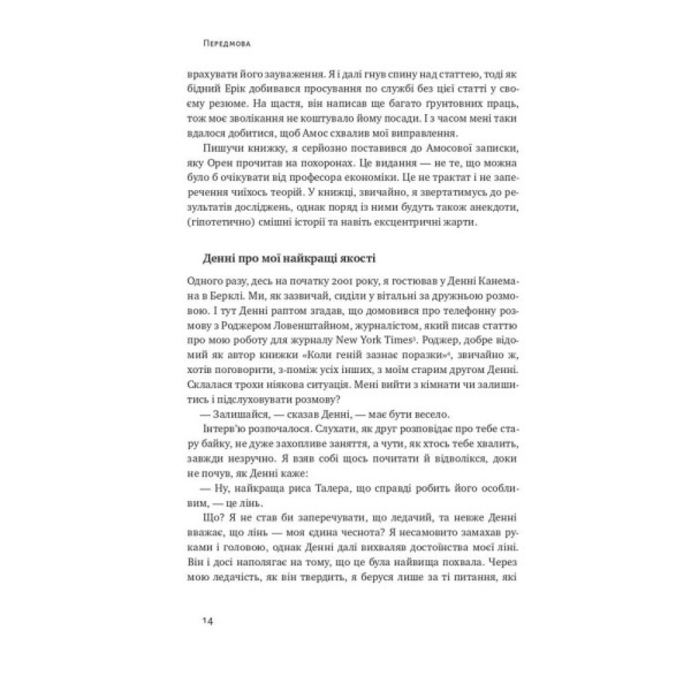 За класичною економічною теорією, люди діють раціонально. Та й самі ми схильні думати, що ухвалюємо рішення з максимальною вигодою для себе. Однак нашим вибором часто керують емоції, і Річард Талер на основі численних досліджень та прикладів із життя переконає вас у цьому. Яких помилок ми як споживачі припускаємося щодня? За яких обставин ми більше схильні до ризику та як ефективно заощаджувати кошти? Про розумні капіталовкладення, гіпотезу ефективного ринку, фреймінг, про наші упередження та самоконтроль він розповідає не лише зрозуміло та цікаво, а й навіть із гумором.