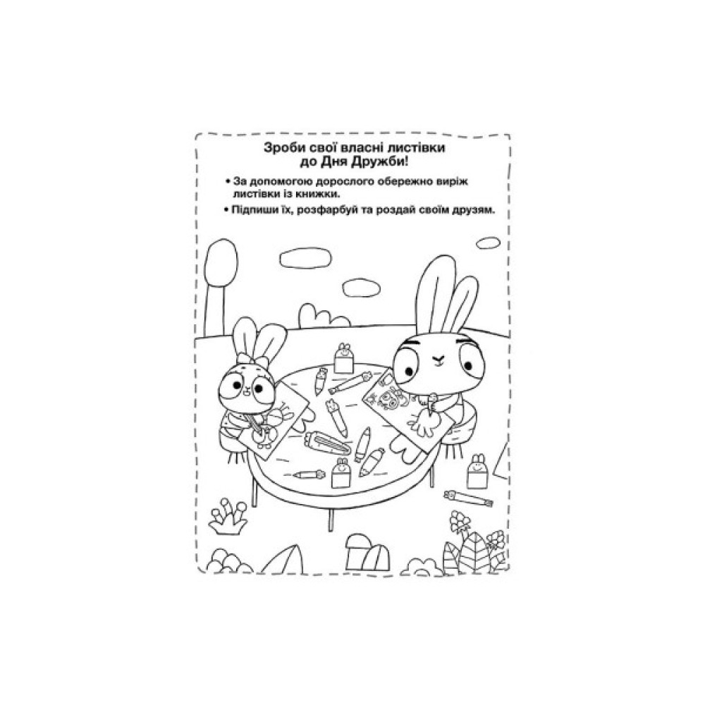 Приєднуйся до команди Хоробрих Зайців і веселись разом з ними! Розфарбуй чудові малюнки, проходь цікаві завдання та створюй власні листівки для друзів. Книжки містять понад 20 наліпок.