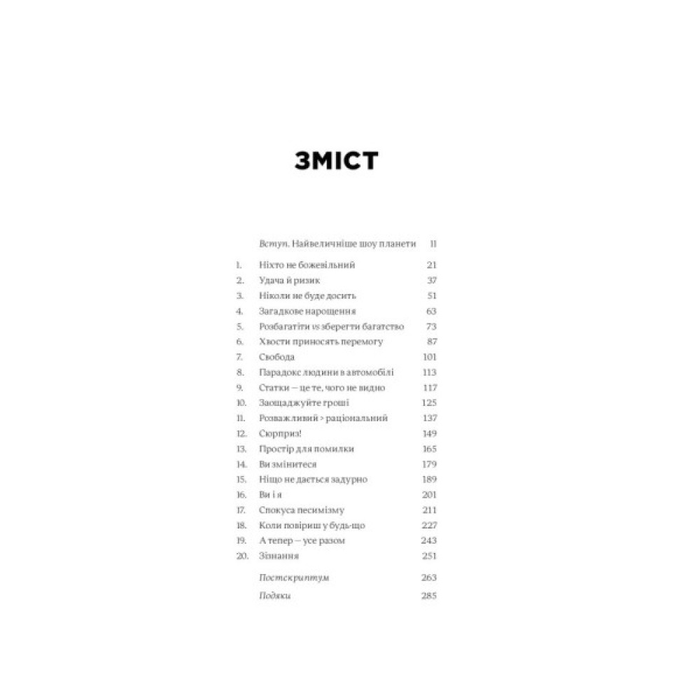 Інвестування грошей, особисті фінанси, рішення для бізнесу — усе це зазвичай вивчають як математичні дисципліни, де дані й формули точно підказують необхідні кроки. Та в реальному світі люди не ухвалюють фінансових рішень на основі електронних таблиць. Вони приймають такі рішення за обіднім столом чи в переговорній, де докупи змішуються особиста історія, унікальний світогляд, его, самолюбство, маркетинг і всілякі випадкові стимули.