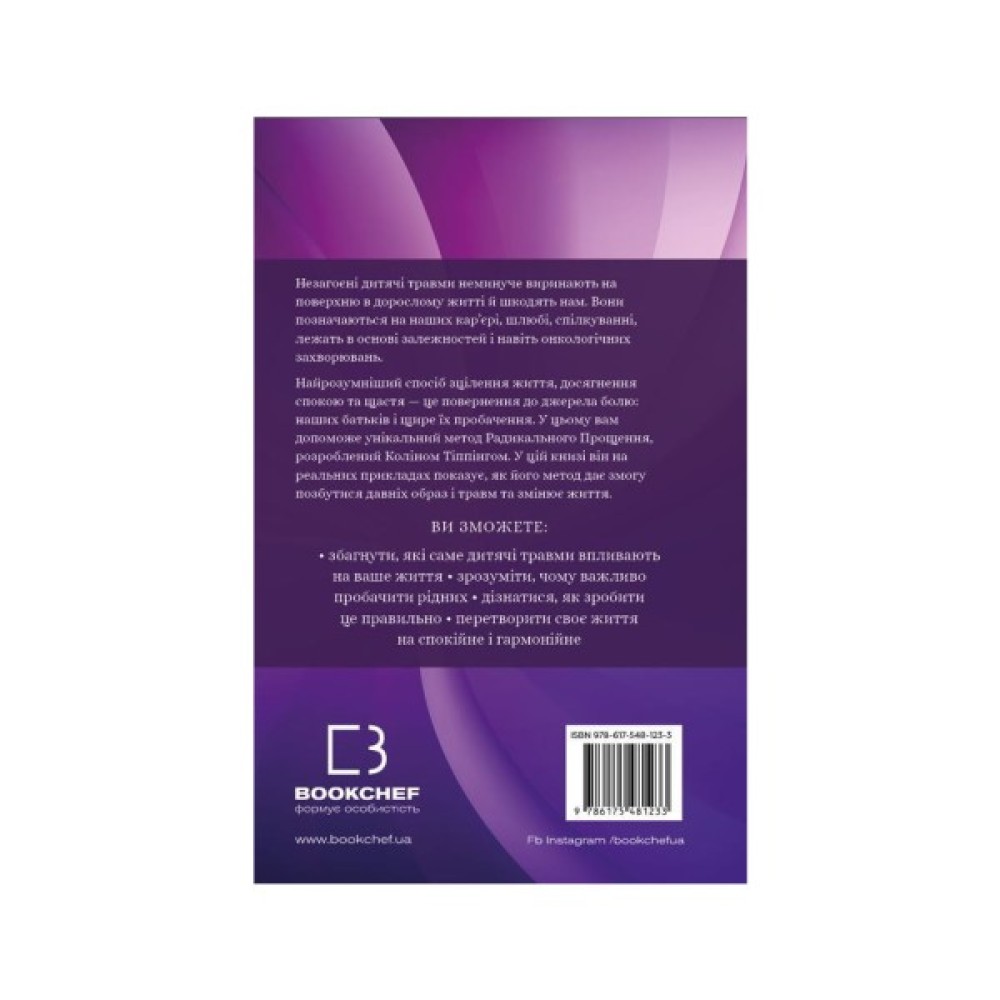 Прощати завжди складно. Однак найскладніше позбутися образ на найрідніших людей. Стосунки батьків і дітей — ціла павутина з безлічі переплетених ниток, і коли деякі з них рвуться, може зруйнуватися уся конструкція довіри й любові. Колін Тіппінг, автор методики Радикального Прощення, знає, яким довгим і тяжким може бути процес відновлення зруйнованих стосунків. Але він також знає, як саме це можна зробити.