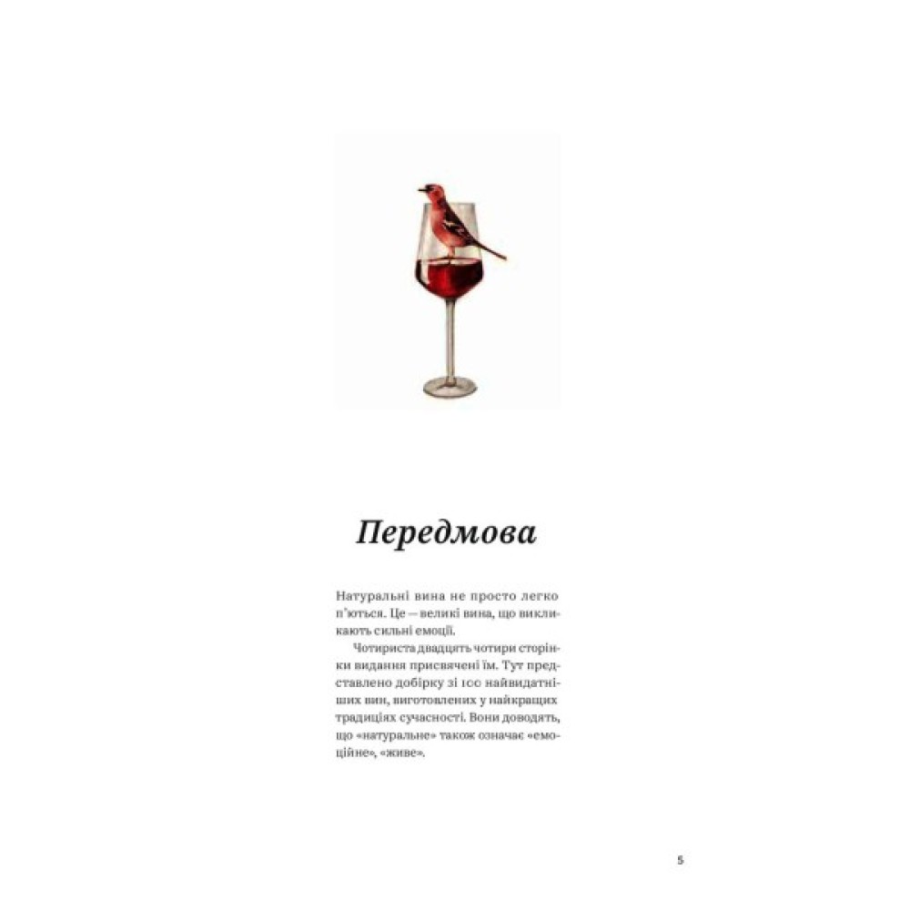 Натуральні вина не просто легко п’ються. Це — великі вина, що викликають сильні емоції. Чотириста двадцять чотири сторінки видання присвячені їм. Тут представлено добірку зі 100 найвидатніших вин, виготовлених у найкращих традиціях сучасності. Вони доводять, що «натуральне» також означає «емоційне», «живе».