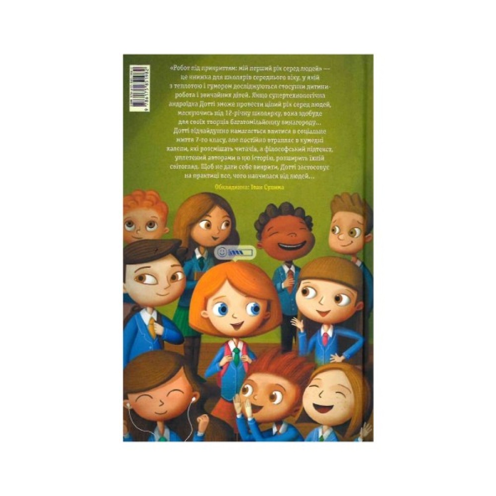 "Робот під прикриттям: мій перший рік серед людей" — це книжка для школярів середнього віку, у якій з теплотою і гумором досліджуються стосунки дитини-робота і звичайних дітей. Якщо супертехноло гічна андро їдка Дотті зможе провести цілий рік серед людей, маскуючись під 12-річну школярку, вона здобуде для своїх творців багато міль йонну винагороду. . . Дотті відчайдушно намагається влитися в соці альне життя 7-го класу, але постійно втрапляє в кумедні халепи, які розсмішать читачів, а філософський підтекст, уплетений авторами в цю історію, розширить їхній світогляд. Щоб не дати себе викрити, Дотті застосовує на практиці все, чого навчилася від людей. . .