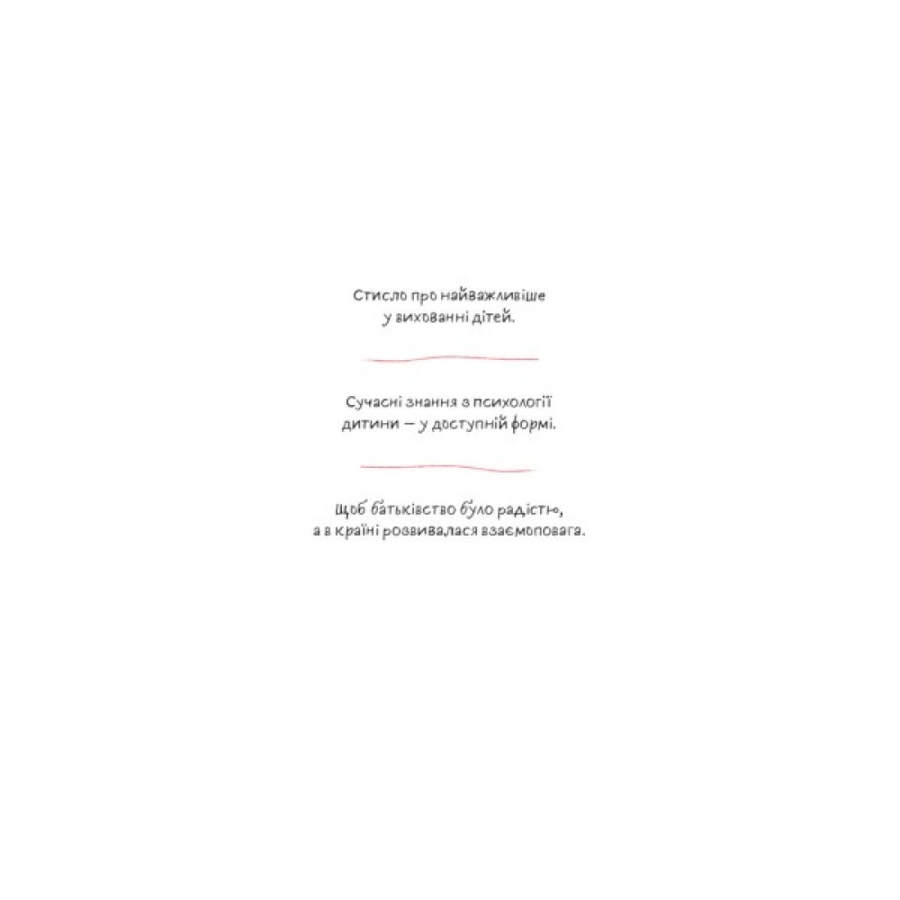 У цій книжці в стислій та доступній формі подано сучасні знання з психології дитини. Авторки Антоніна Оксанич, Наталя Біда і Олександра Сидорченко зібрали найважливіше для того, щоб батьківство було радістю, а в країні розвивалася взаємоповага.