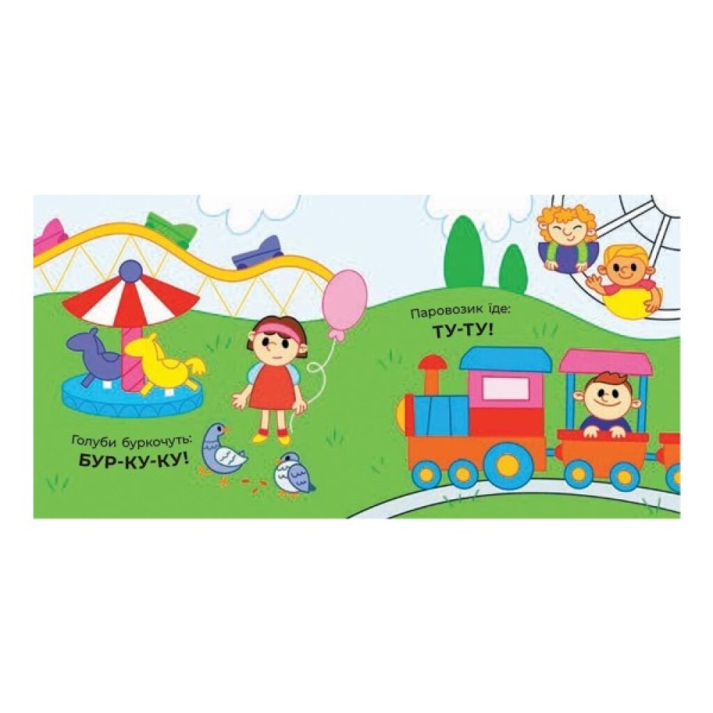 Немовля чує звуки ще до свого народження, а після — пізнає за їхньою допомогою світ довкола. І книжечка «У місті» залюбки допоможе з цим! Вона познайомить малечу з багатьма звуками, які чути в галасливому місті, наприклад: «Фотограф робить знімок: клац-клац! Глядачі плескають: лясь-лясь!».