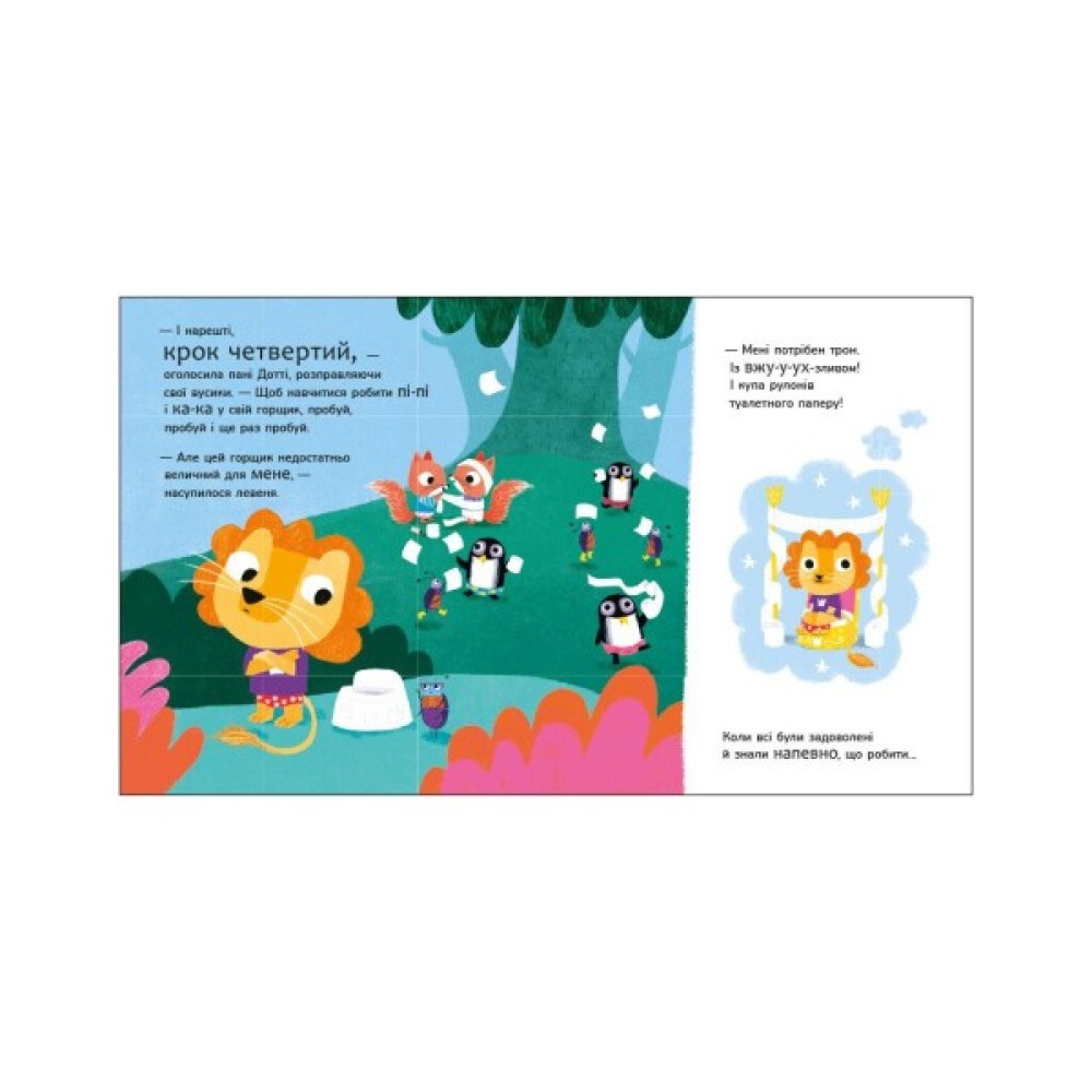 - Книжка лагідно зацікавить малюка й спонукає почати користатися горщиком.