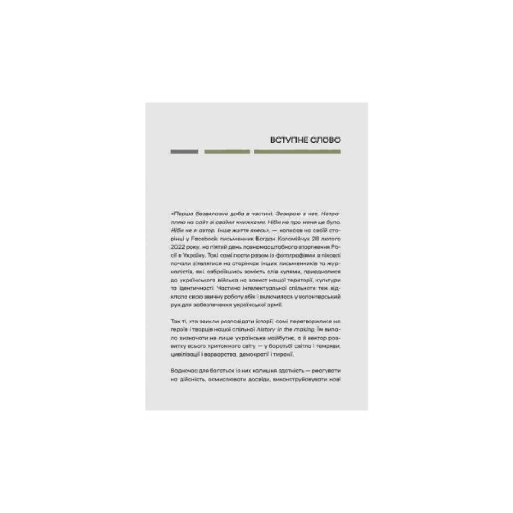 З початком повномасштабної війни Росії проти України сотні українських письменників і журналістів долучилися до Збройних сил або взялися за активну волонтерську роботу для забезпечення армії. Ті, хто звик змінювати світ текстами, були змушені стати на захист своєї країни.