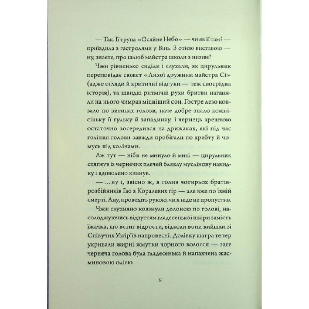 Добре, що в цій подорожі Чжи зустріли особливих супутників. З їхньою допомогою чернець Співучих Узгір’їв сподівається зібрати докупи всі ниточки заплутаної історії про майстрів бойових мистецтв, а головне — дістатися до місця призначення живим і неушкодженим.