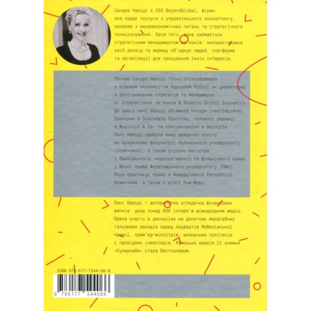 «“Суперхаби” проливають світло на фінансовий світ і надзвичайно могутніх титанів на чолі цього світу. Завдяки яскравому наративу та системному мисленню Сандра Навіді без зусиль з’єднує крапки між людьми, організаціями та подіями. Її висновки демонструють системні небезпеки й потенційні поліпшення. Я вельми рекомендую цю цікаву та дуже корисну книжку».