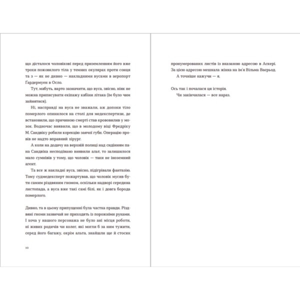 Які таємниці приховує історія її родини, ким був таємничий Фредрік М. Сандвікс – чоловік із накладними вусами, трохи схожий на різдвяного гнома, які неочікувані деталі дізнається Вільма про своє народження, батька і маму – про це і багато іншого ви дізнаєтесь, прочитавши цю емоційну й теплу історію з нотками чорного гумору, глибоку й щемку, таку, яка назавжди залишається в серці.