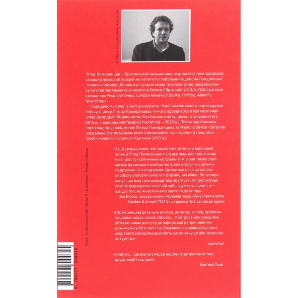 «Померанцев детально описує, як погані хлопці зробили соціальні медіа своєю зброєю… Контраст між суворими обмеженнями доступу до інформації репресивними режимами у ХХ столітті та безкінечна халява сучасного медійного середовища робить цю книжку до збентеження потужною». - Economist