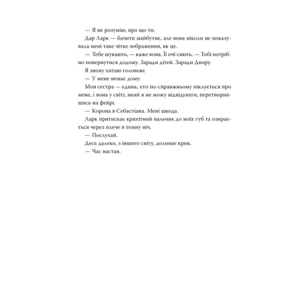 Коли сестру Абріелли продали до світу фейрі, дівчина думала, що життя не може бути гіршим. Проте вона заплутується в небезпечному павутинні власних дій і рішень: закохується у двох принців, але не довіряє жодному з них. Все значно складніше, ніж думала Абріелла.