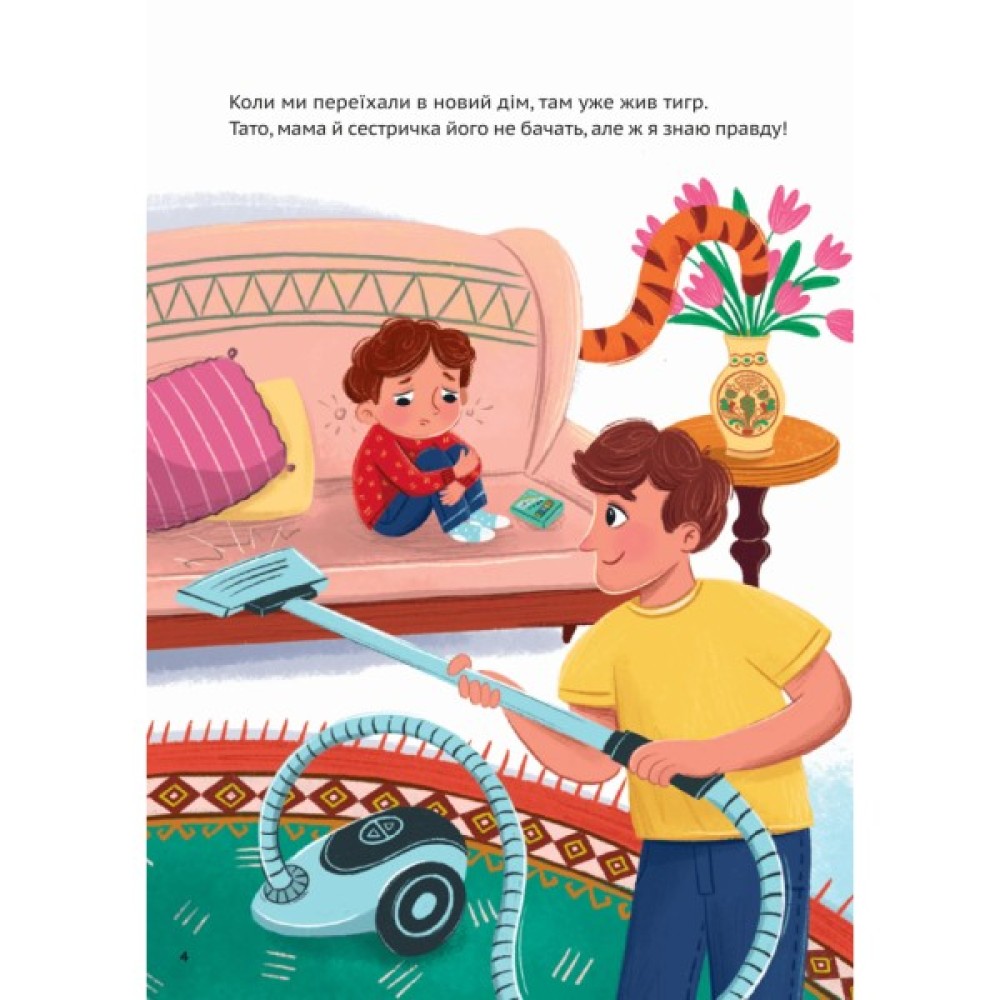 Кумедна i зворушлива iсторiя про сiм’ю, яка оселяється в домi, де живе невидимий тигр. Вiн то гойдається на люстрi, то лежить у ваннi, то засмагає на балконi. А одного разу навiть заявився у школу! От тiльки бачить тигра лише хлопчик.