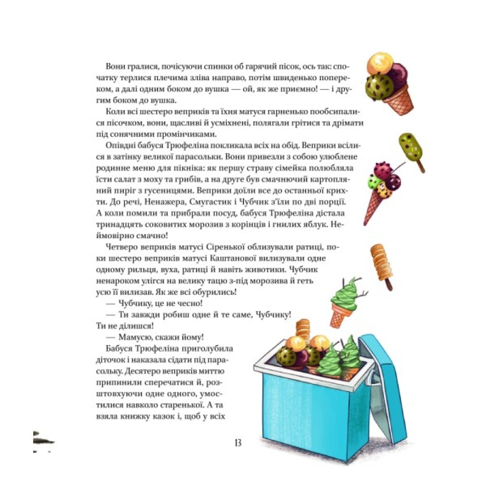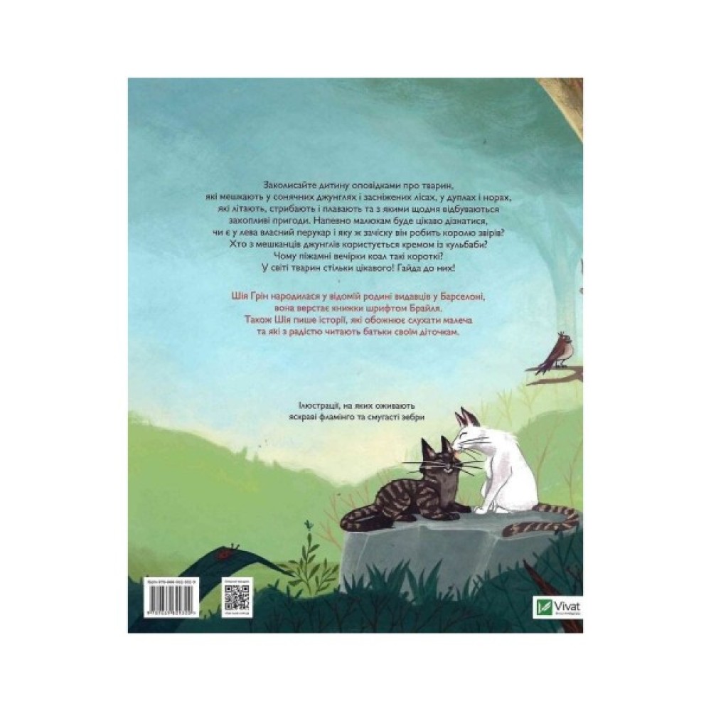 Заколисайте дитину оповідками про тварин, які мешкають у сонячних джунглях і засніжених лісах, у дуплах і норах. З мешканцями, які літають, стрибають і плавають, щодня відбуваються захопливі пригоди.