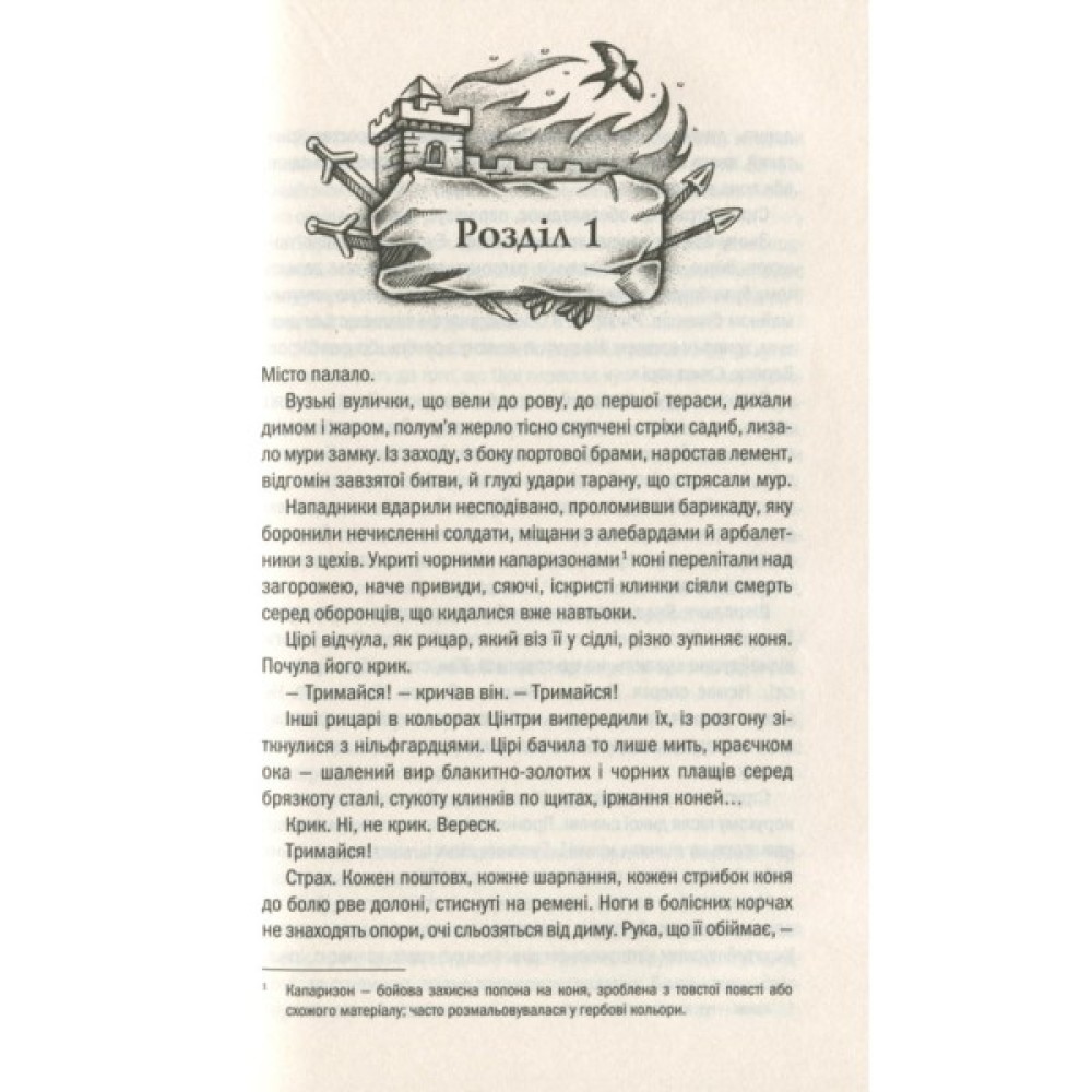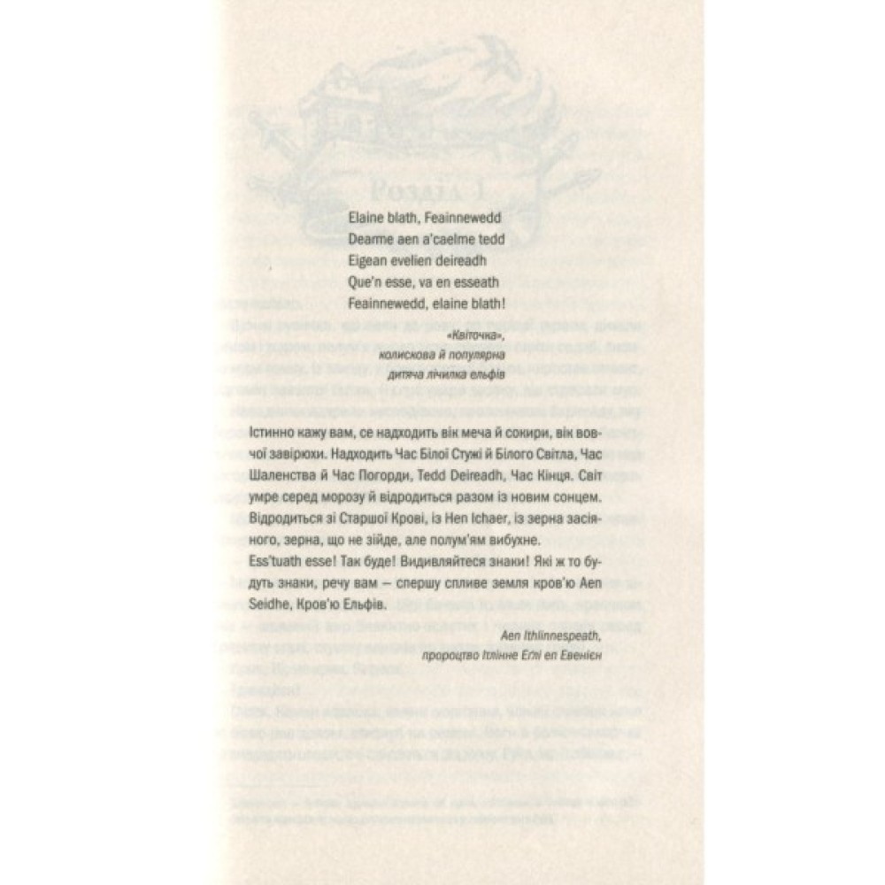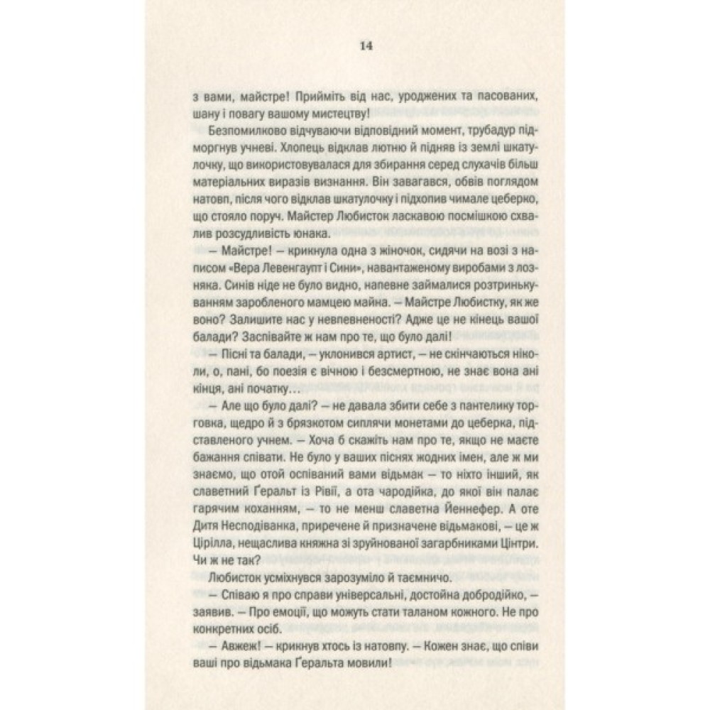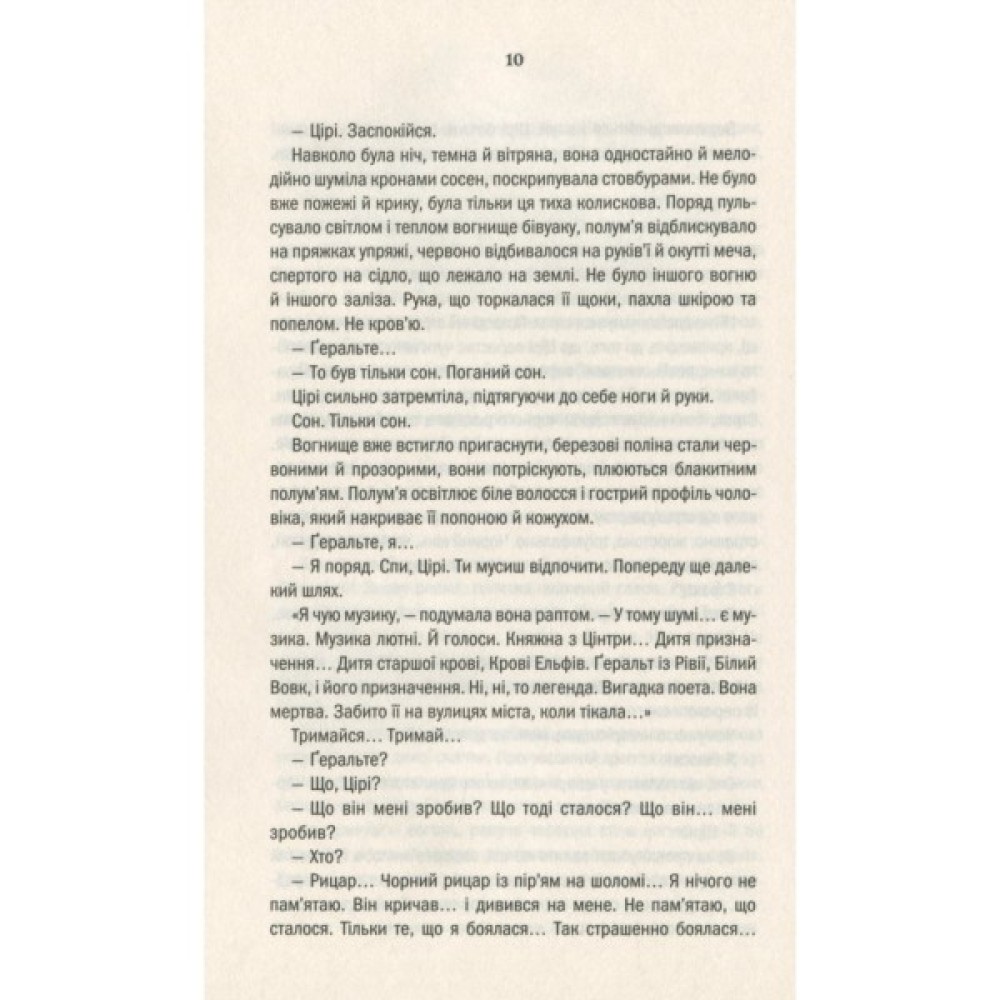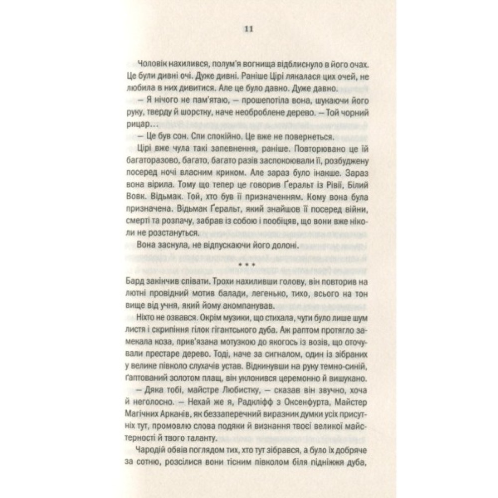 Маленька Цірі — дитя-несподіванка — стала більшою несподіванкою, ніж видавалось спочатку. Жахливі сни про загибель Цінтри руйнують її душу, а чаклунський дар, що народжується, може зруйнувати тіло. Дати йому раду під силу лише могутній чарівниці Йеннефер. Тож Ґеральту не вдається довго переховувати Цірі у Відьмачому Оселищі. Попереду небезпечна подорож, бо для багатьох маленька княжна Цінтри — останній аргумент: для Ради Чародіїв, для чотирьох королів, для зловісних посланців Нільфгарду… І тільки Ґеральт оберігає сіроволосу дівчинку заради неї самої…