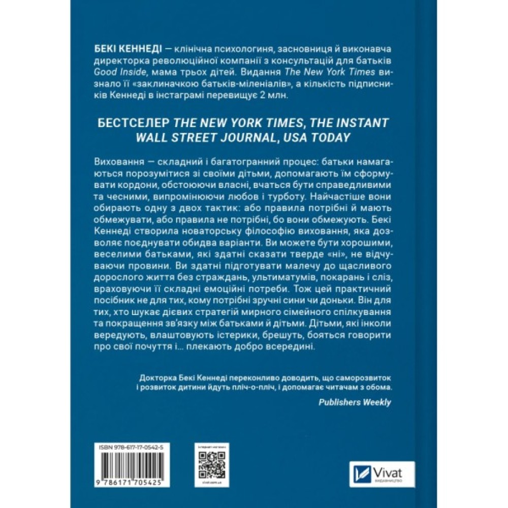 Виховання — складний і багатогранний процес: батьки намагаються порозумітися зі своїми дітьми, допомагають їм сформувати кордони, обстоюючи власні, вчаться бути справедливими та чесними, випромінюючи любов і турботу. Найчастіше вони обирають одну з двох тактик: або правила потрібні й мають обмежувати, або правила не потрібні, бо вони обмежують. Бекі Кеннеді створила новаторську філософію виховання, яка дозволяє поєднувати обидва варіанти. Ви можете бути хорошими, веселими батьками, які здатні сказати тверде «ні», не відчуваючи провини. Ви здатні підготувати малечу до щасливого дорослого життя без страждань, ультиматумів, покарань і сліз, враховуючи ї ї складні емоційні потреби.